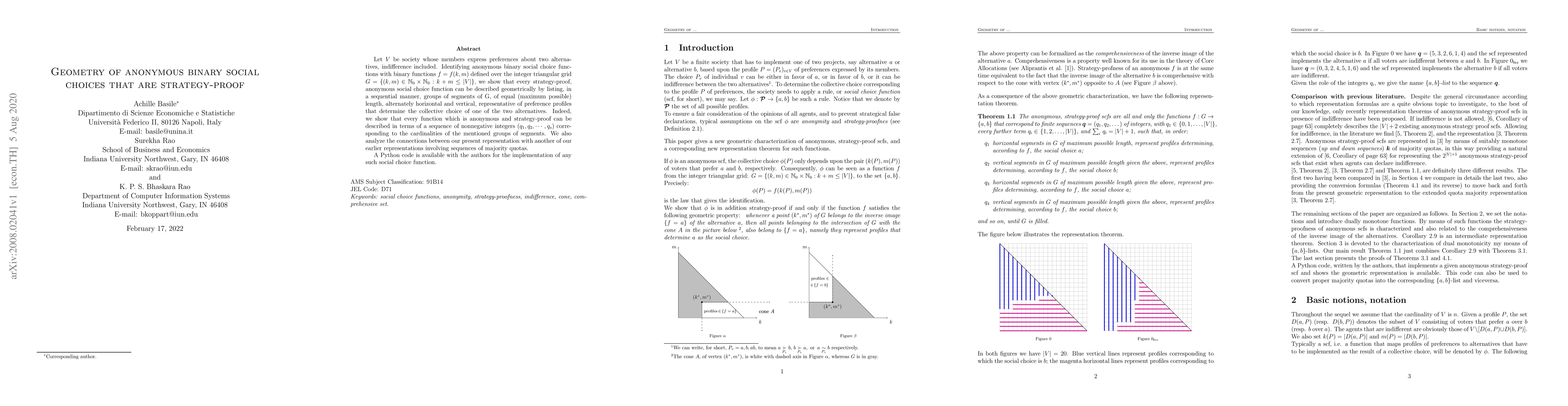 Researchers show that anonymous binary social choice functions can be represented geometrically as sequences of segments from a triangular grid, revealing new insights into strategy-proof decision-making.