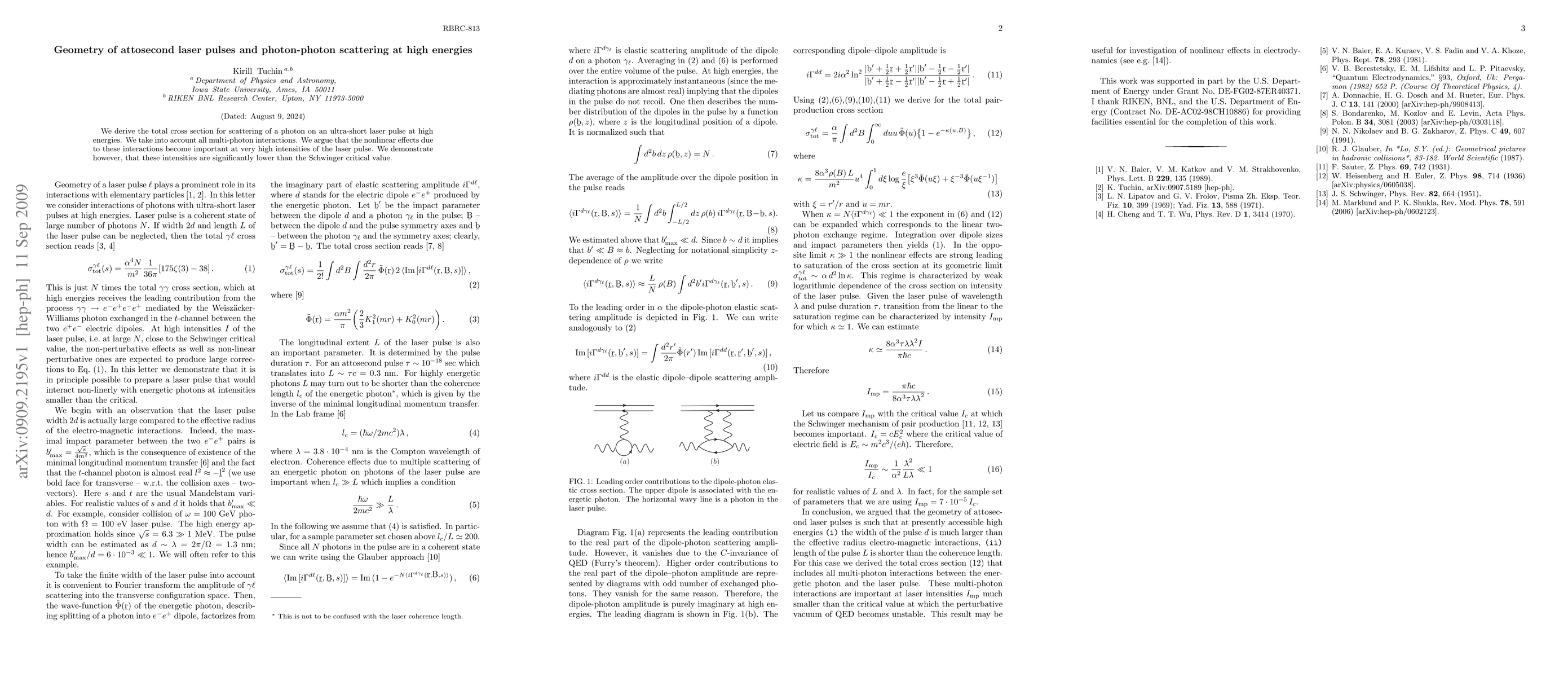 We derive the total cross section for scattering of a photon on an ultra-short laser pulse at high energies. We take into account all multi-photon interactions. We argue that the nonlinear effects due to these interactions become important at very high intensities of the laser pulse. We demonstrate however, that these intensities are significantly lower than the Schwinger critical value.