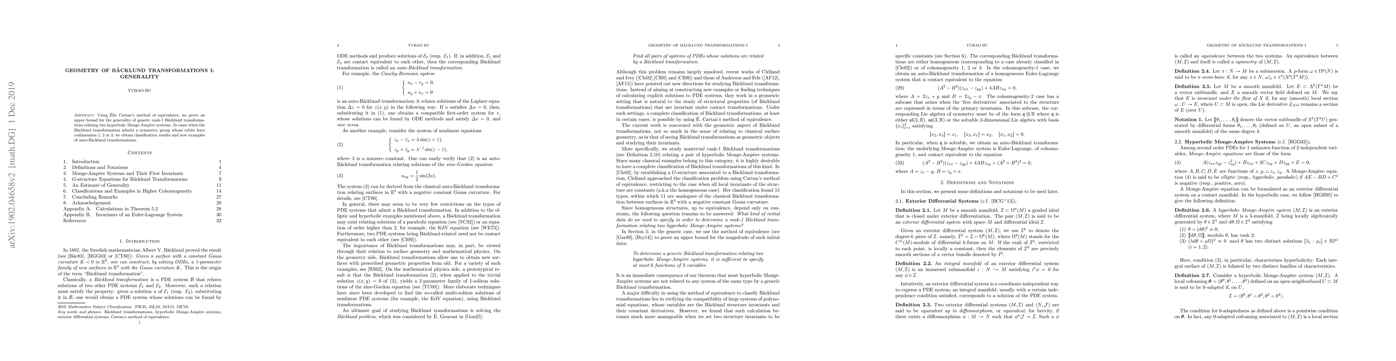 This paper uses Cartan's Method of Equivalence to establish an upper bound for the generality of rank-1 Bäcklund transformations linking hyperbolic Monge-Ampère systems, and it classifies these transformations when they possess symmetry groups of codimension 1, 2, or 3, leading to new auto-Bäcklund transformation examples.
