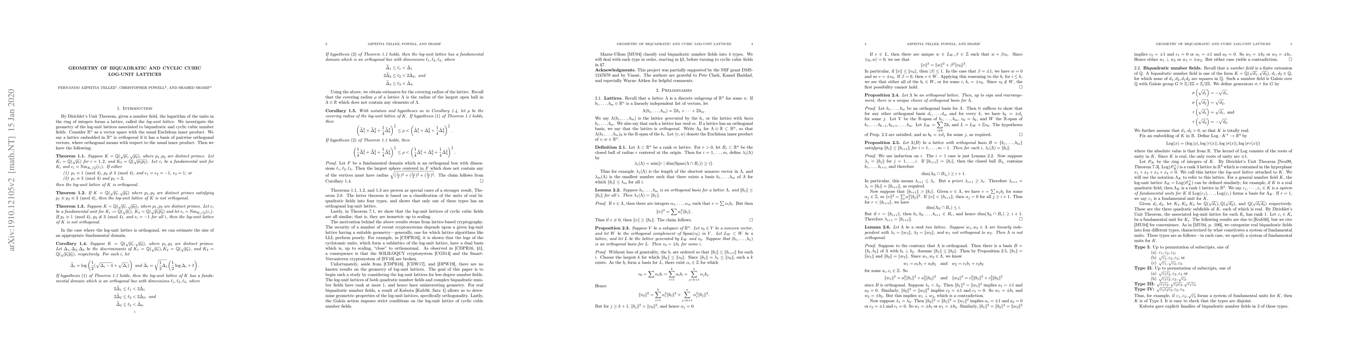 This paper explores the geometric properties of log-unit lattices in biquadratic and cyclic cubic number fields, determining when the biquadratic log-unit lattice is orthogonal and proving that the cyclic cubic log-unit lattice is always equilateral triangular.