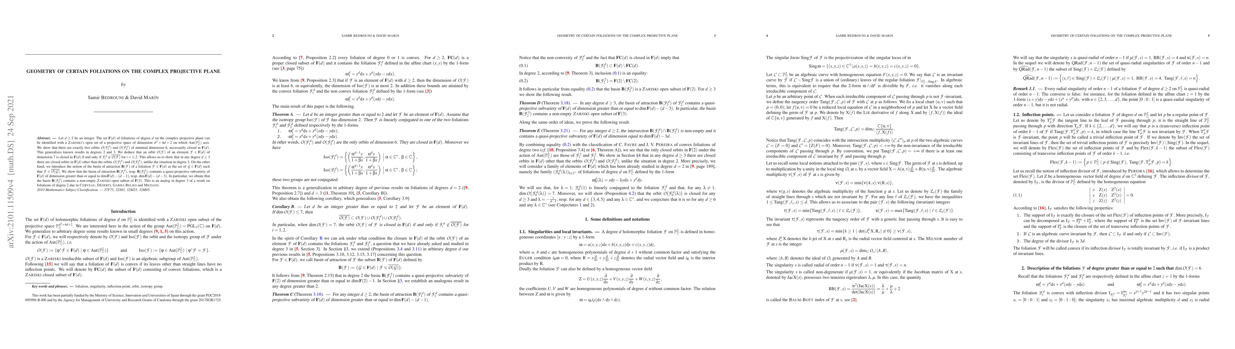 Researchers found two distinct orbits of minimal dimension 6 in the space of foliations on the complex projective plane, leading to new insights into the structure of these spaces and their closed orbits.