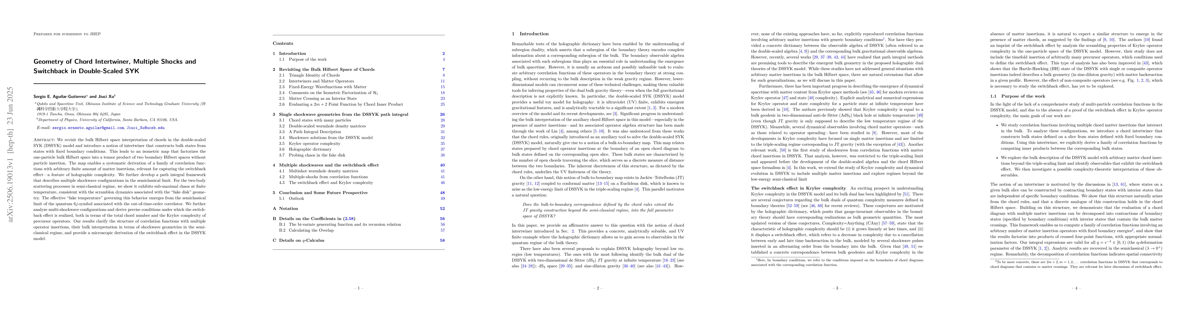 We revisit the bulk Hilbert space interpretation of chords in the double-scaled SYK (DSSYK) model and introduce a notion of intertwiner that constructs bulk states from states with fixed boundary conditions. This leads to an isometric map that factorizes the one-particle bulk Hilbert space into a tensor product of two boundary Hilbert spaces without particle insertion. The map enables a systematic derivation of a family of correlation functions with arbitrary finite amount of matter insertions, relevant for capturing the switchback effect-a feature of holographic complexity. We further develop a path integral framework that describes multiple shockwave configurations in the semiclassical limit. For the two-body scattering processes in semi-classical regime, we show it exhibits sub-maximal chaos at finite temperature, consistent with the scramblon dynamics associated with the "fake disk" geometry. The effective "fake temperature" governing this behavior emerges from the semiclassical limit of the quantum $6 j$-symbol associated with the out-of-time-order correlator. We further analyze multi-shockwave configurations and derive precise conditions under which the switchback effect is realized, both in terms of the total chord number and the Krylov complexity of precursor operators. Our results clarify the structure of correlation functions with multiple operator insertions, their bulk interpretation in terms of shockwave geometries in the semiclassical regime, and provide a microscopic derivation of the switchback effect in the DSSYK model.