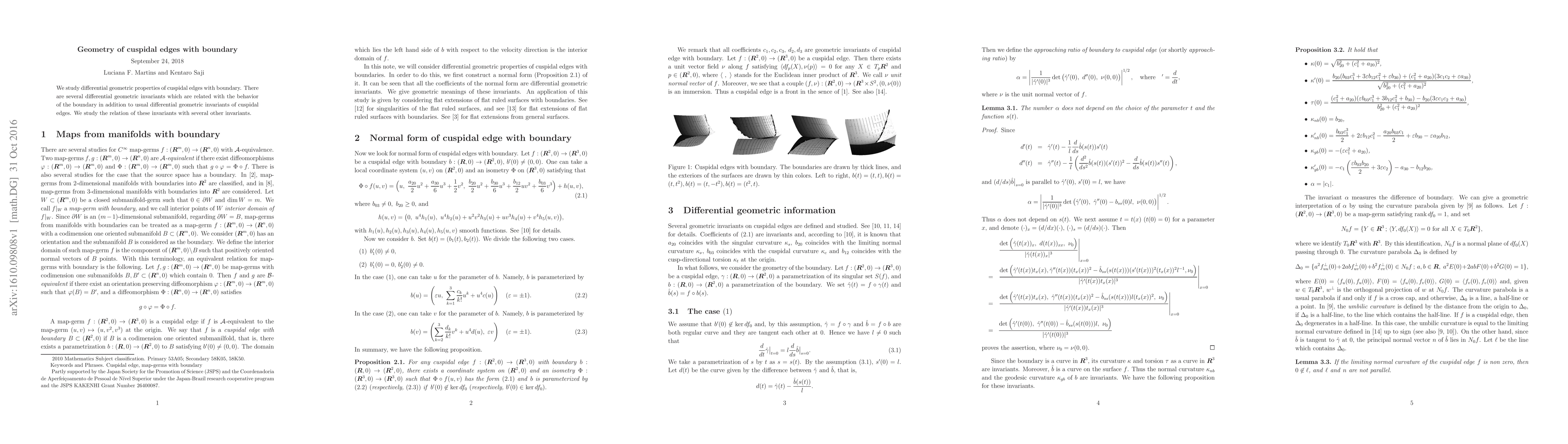 This paper investigates the differential geometric properties of cuspidal edges with boundary, focusing on the behavior of the boundary and the relationship between various geometric invariants. It explores how these invariants interact and their implications for the overall geometry.