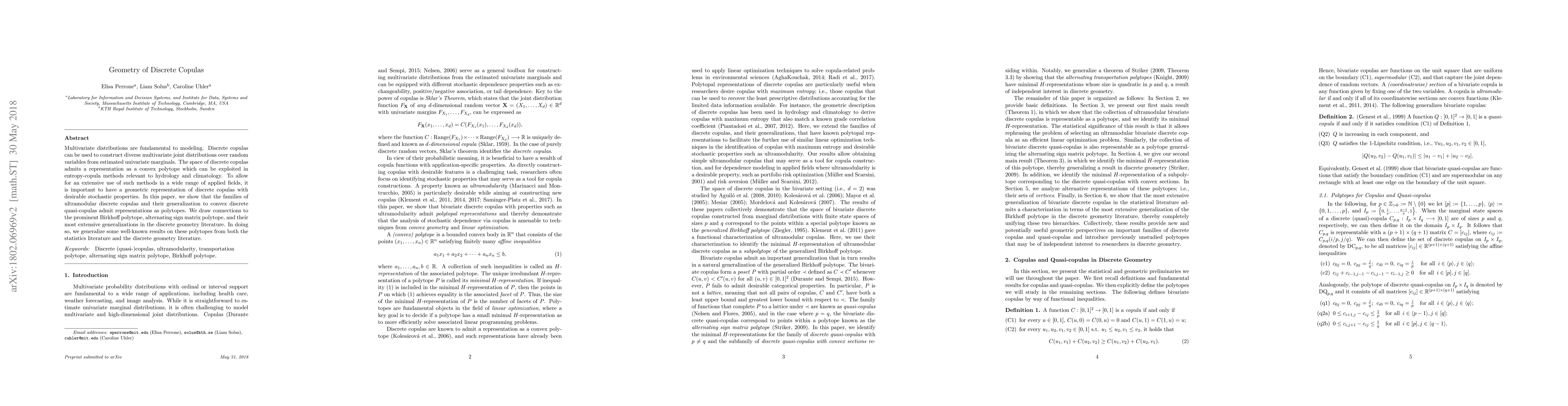 This paper explores the geometric representation of discrete copulas as convex polytopes, showing that ultramodular discrete copulas and convex discrete quasi-copulas can be represented in this way. It draws connections to prominent polytopes in discrete geometry, generalizing known results and enhancing their applicability in fields like hydrology and climatology.