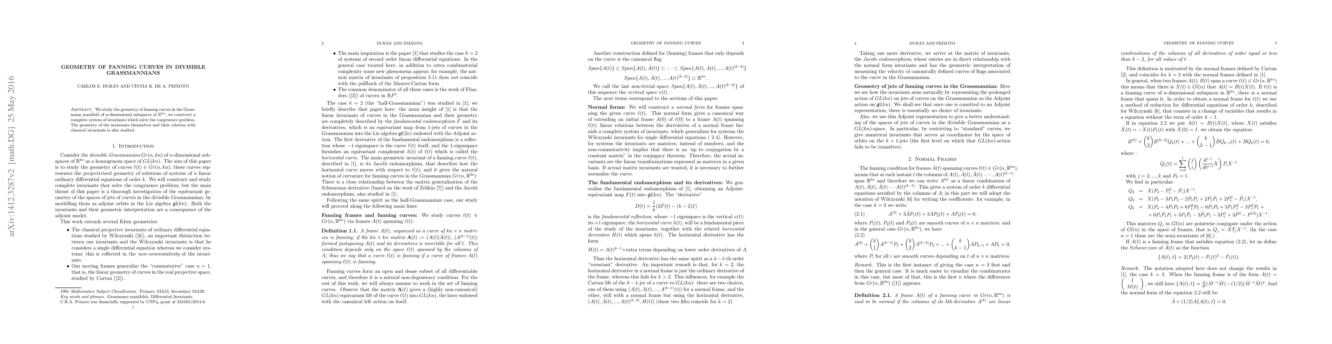 This paper investigates the geometry of fanning curves in Grassmannians, constructing a complete set of invariants to solve the congruence problem, and explores the relationship between these new invariants and classical ones.