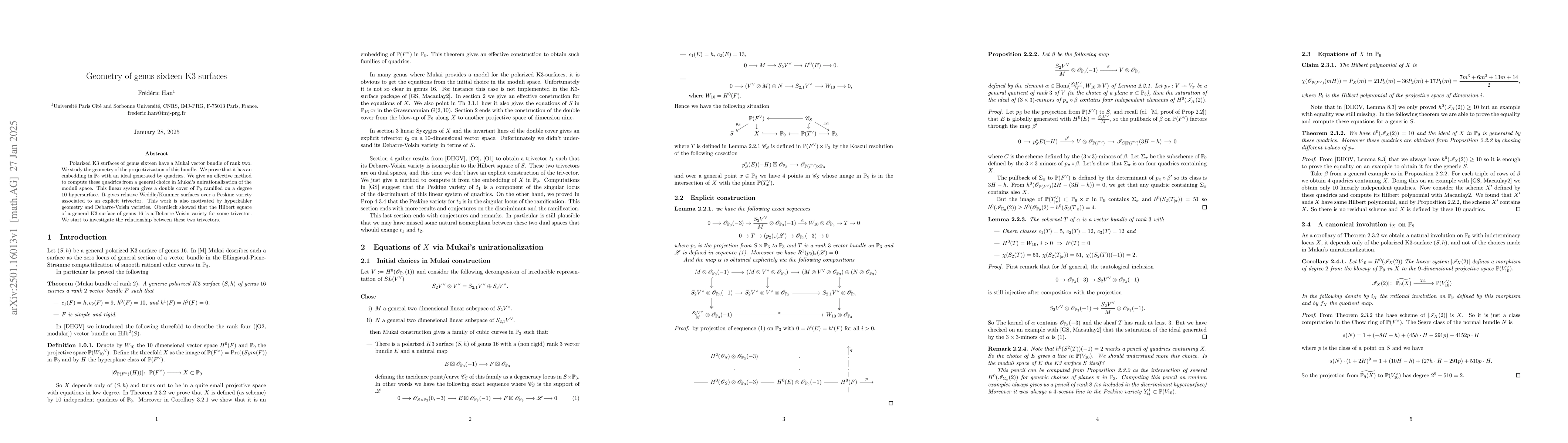 This paper explores the geometry of polarized K3 surfaces of genus sixteen, focusing on the projectivization of their associated rank-two Mukai vector bundle. The authors prove the embedding of this geometry in $\mathbb{P}_9$ using quadrics and detail a method to compute these quadrics, revealing connections to hyperkähler geometry and Debarre-Voisin varieties.