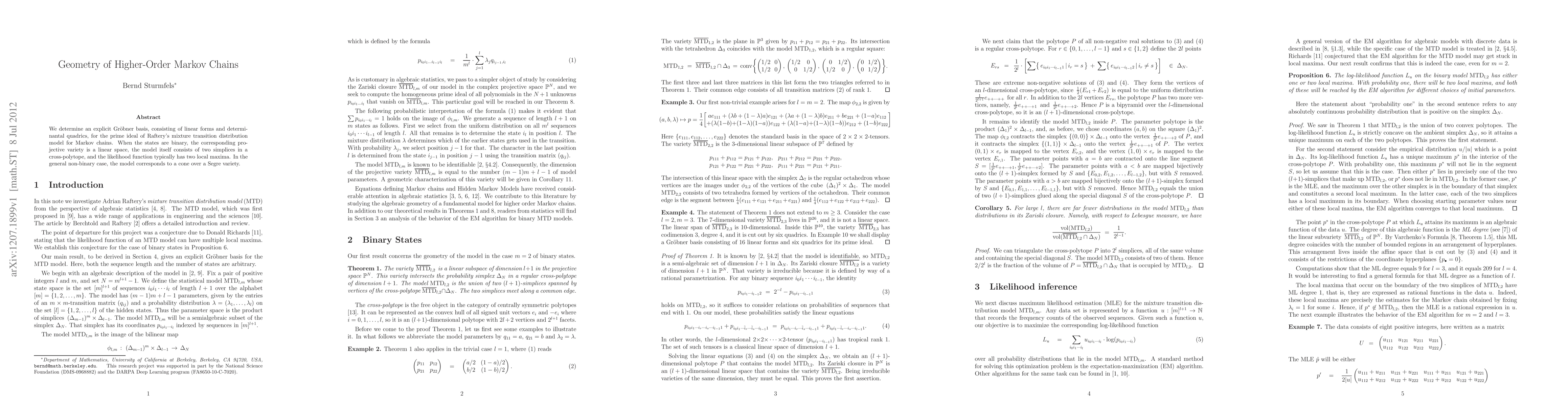 We determine an explicit Gr\"obner basis, consisting of linear forms and determinantal quadrics, for the prime ideal of Raftery's mixture transition distribution model for Markov chains. When the states are binary, the corresponding projective variety is a linear space, the model itself consists of two simplices in a cross-polytope, and the likelihood function typically has two local maxima. In the general non-binary case, the model corresponds to a cone over a Segre variety.