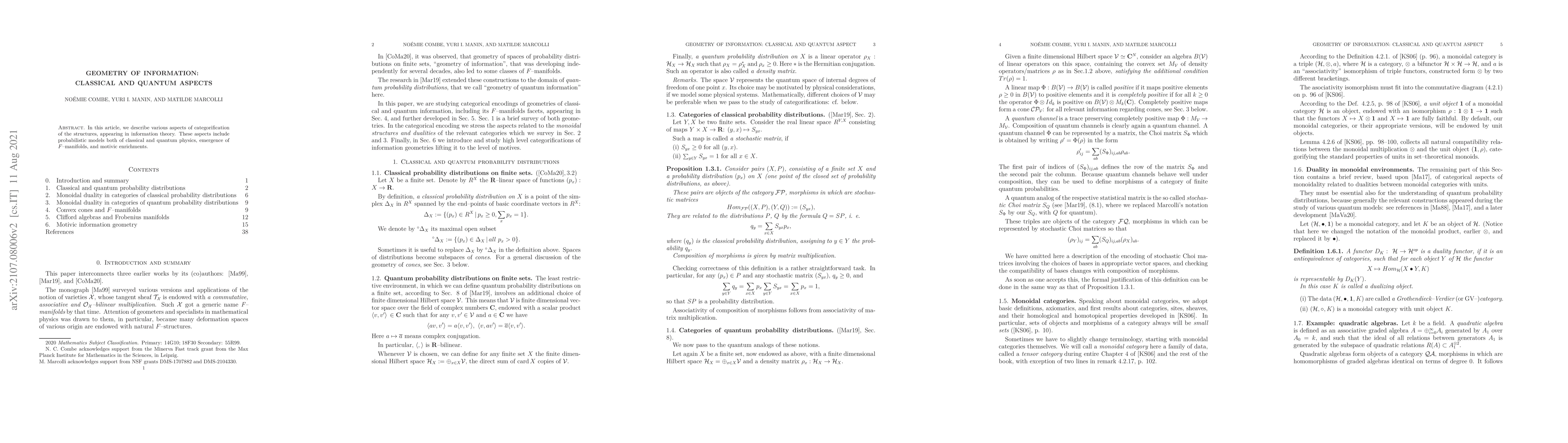 This paper explores the geometric aspects of information theory in both classical and quantum physics, revealing connections between probabilistic models and the emergence of new mathematical structures.