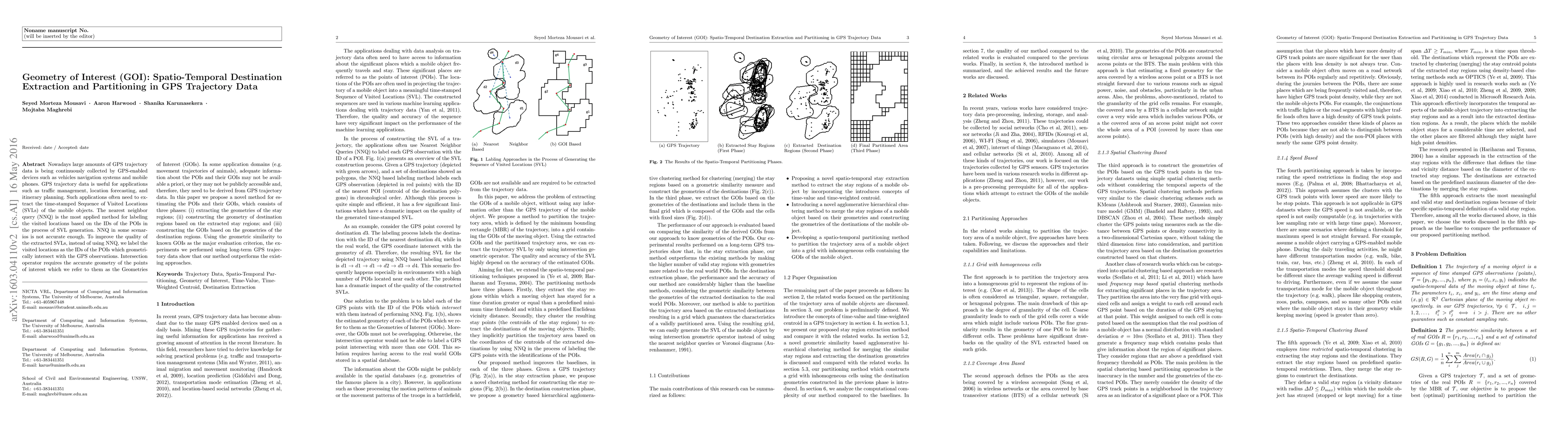 This paper proposes a novel method for extracting and partitioning spatio-temporal destination regions from GPS trajectory data, improving the accuracy of labeling visited locations by using geometric intersection instead of nearest neighbor queries. The method involves estimating Points of Interest (POIs) and their Geometries of Interest (GOIs) through three phases, demonstrating superior performance compared to existing approaches.