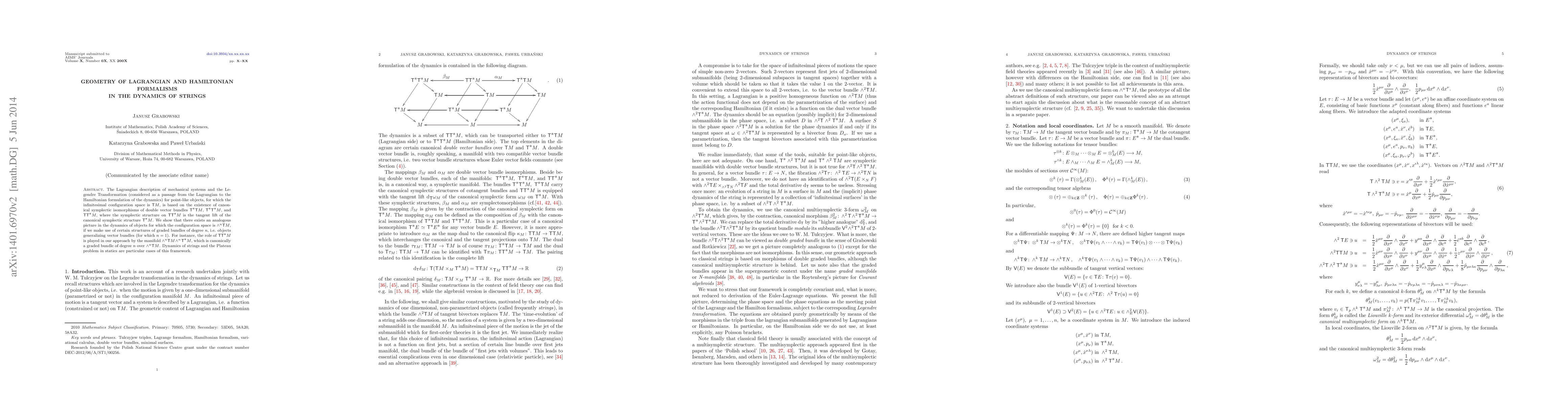 The Lagrangian description of mechanical systems and the Legendre Transformation (considered as a passage from the Lagrangian to the Hamiltonian formulation of the dynamics) for point-like objects, for which the infinitesimal configuration space is TM, is based on the existence of canonical symplectic isomorphisms of double vector bundles T*TM, T*TM, and TT*M. We show that there exist an analogous picture in the dynamics of objects for which the configuration space is the vector bundle of n-vectors, if we make use of certain graded bundle structures of degree n, i.e. objects generalizing vector bundles (for which n=1). For instance, the role of TT*M is played in our approach by the vector bundle of n-vectors on the bundle of n-covectors, which is canonically a graded bundle of degree n over the bundle of n-vectors. Dynamics of strings and the Plateau problem in statics are particular cases of this framework.