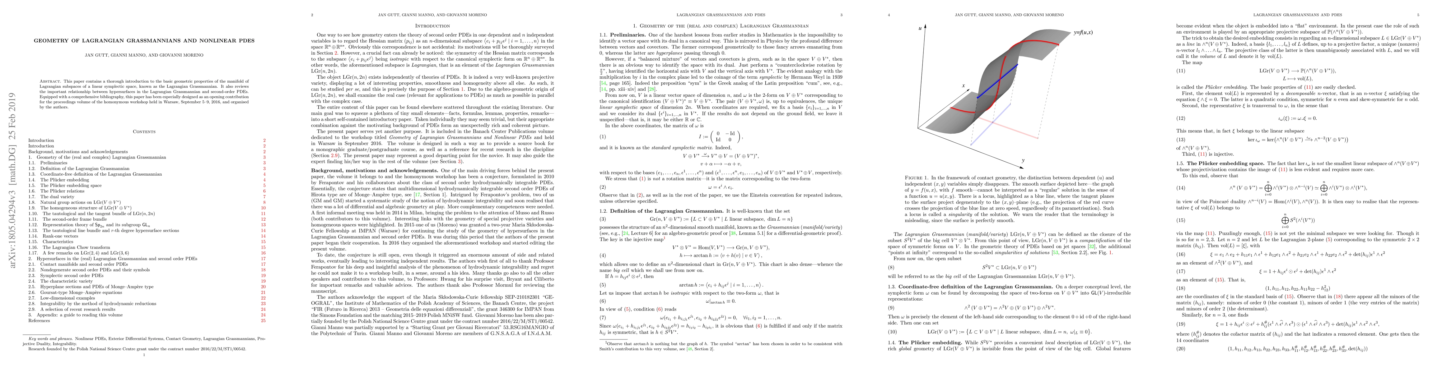Summary: This paper explores the geometric properties of Lagrangian Grassmannians, focusing on the manifold of Lagrangian subspaces in symplectic spaces, and highlights their connection to second-order partial differential equations (PDEs).