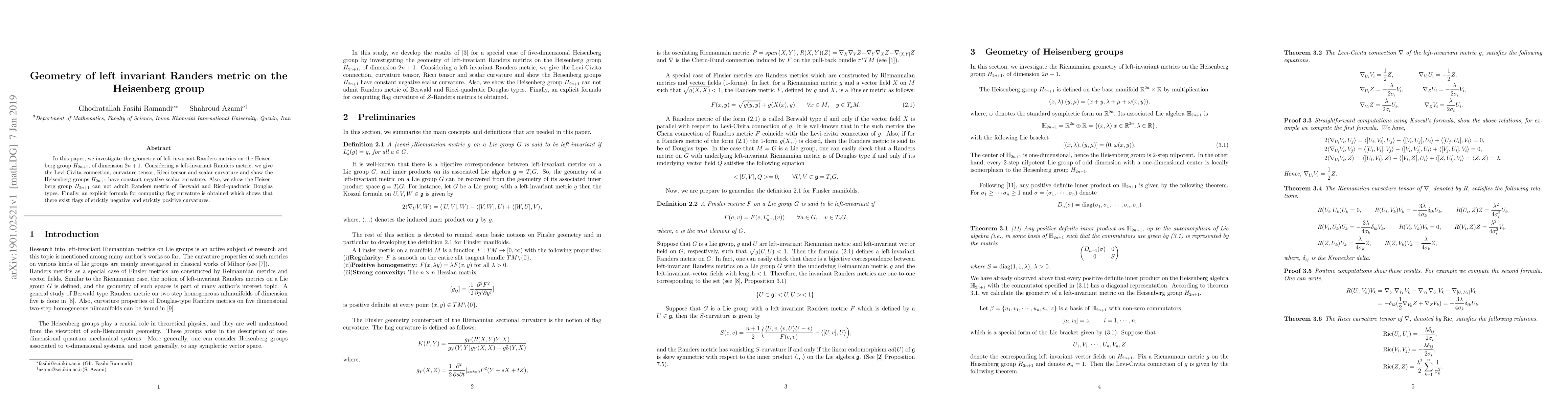 This paper investigates the geometry of left-invariant Randers metrics on the Heisenberg group, a mathematical framework for studying fluid dynamics and other fields.