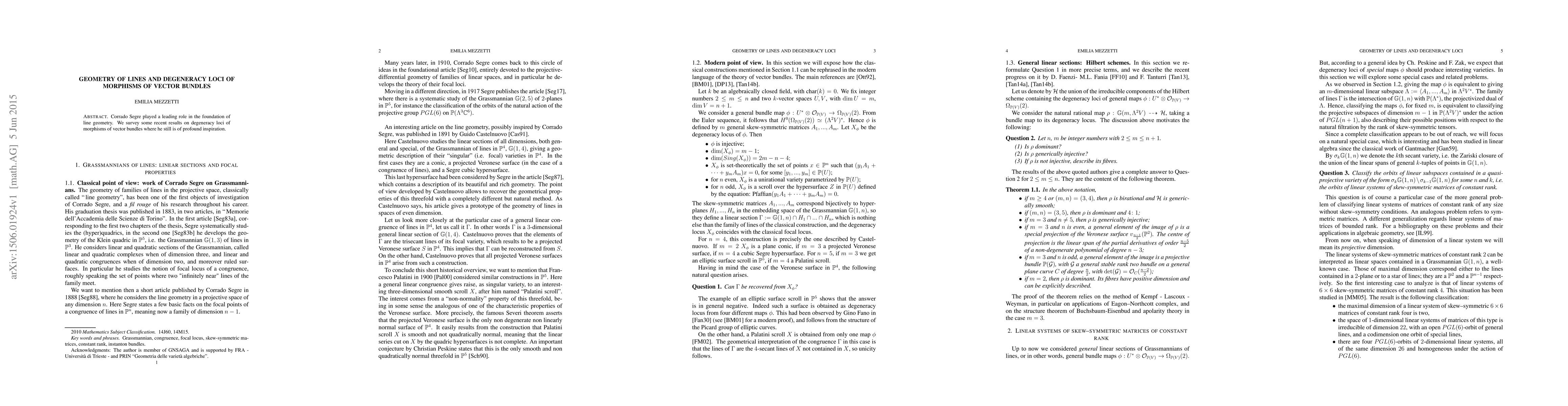 Summary: This paper surveys recent findings on the degeneracy loci of morphisms between vector bundles, drawing inspiration from Corrado Segre's foundational work in line geometry. It highlights the geometric implications and significance of these loci in modern vector bundle theory.