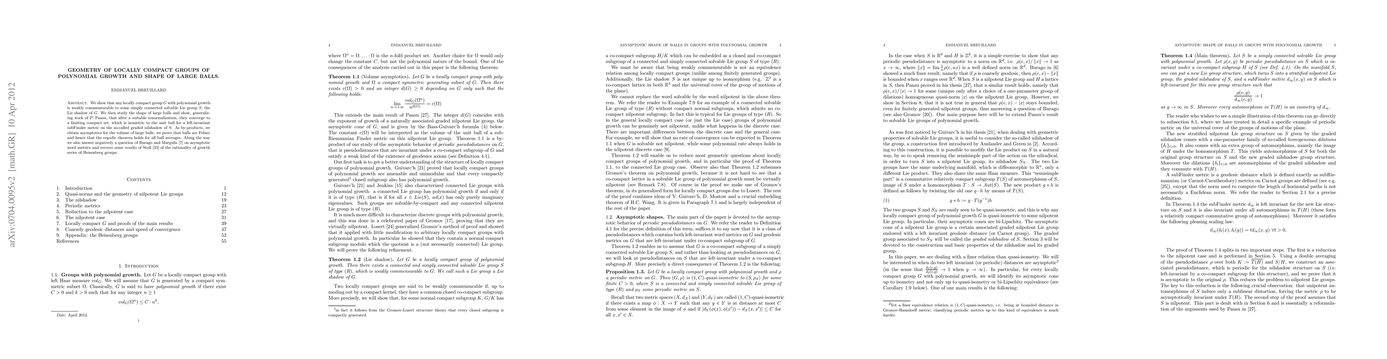 We get asymptotics for the volume of large balls in an arbitrary locally compact group G with polynomial growth. This is done via a study of the geometry of G and a generalization of P. Pansu's thesis. In particular, we show that any such G is weakly commensurable to some simply connected solvable Lie group S, the Lie shadow of G. We also show that large balls in G have an asymptotic shape, i.e. after a suitable renormalization, they converge to a limiting compact set which can be interpreted geometrically. We then discuss the speed of convergence, treat some examples and give an application to ergodic theory. We also answer a question of Burago about left invariant metrics and recover some results of Stoll on the irrationality of growth series of nilpotent groups.