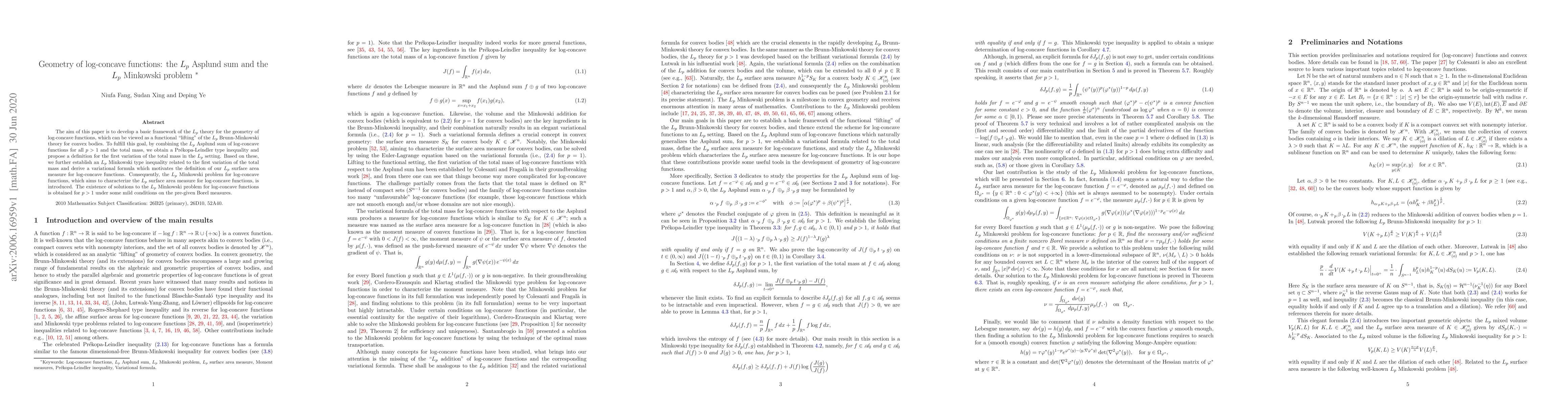 This paper develops an $L_p$ theory framework for the geometry of log-concave functions, extending the $L_p$ Brunn-Minkowski theory. It introduces an $L_p$ Minkowski problem for log-concave functions and proves the existence of solutions for $p>1$ under certain conditions.