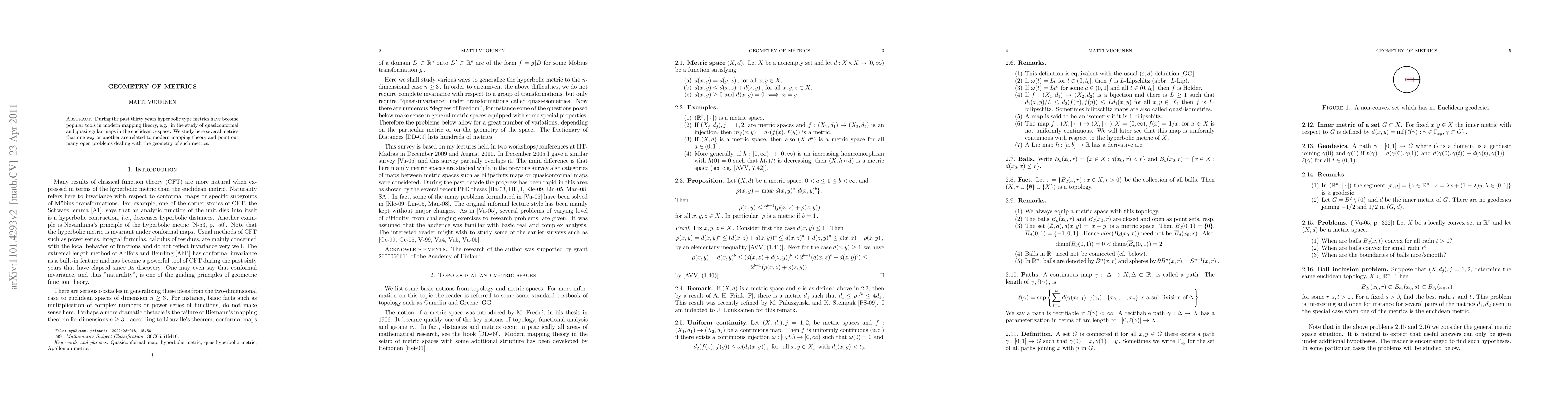 During the past thirty years hyperbolic type metrics have become popular tools also in modern mapping theory, e.g., in the study of quasiconformal and quasiregular maps in the euclidean $n$-space. We study here several metrics that one way or another are related to modern mapping theory and point out many open problems dealing with the geometry of such metrics.