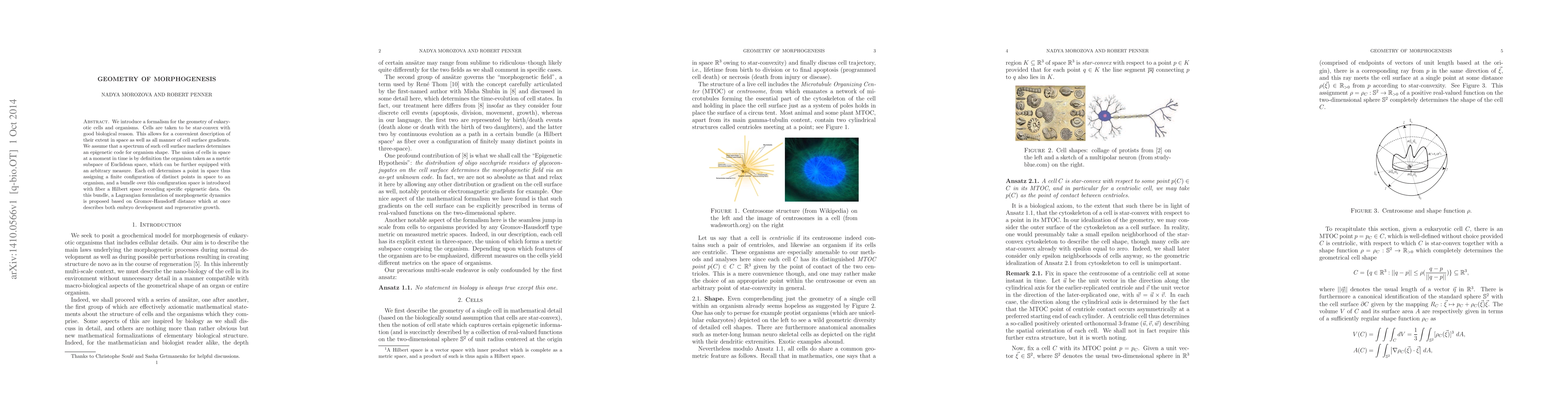 We introduce a formalism for the geometry of eukaryotic cells and organisms.Cells are taken to be star-convex with good biological reason. This allows for a convenient description of their extent in space as well as all manner of cell surface gradients. We assume that a spectrum of such cell surface markers determines an epigenetic code for organism shape. The union of cells in space at a moment in time is by definition the organism taken as a metric subspace of Euclidean space, which can be further equipped with an arbitrary measure. Each cell determines a point in space thus assigning a finite configuration of distinct points in space to an organism, and a bundle over this configuration space is introduced with fiber a Hilbert space recording specific epigenetic data. On this bundle, a Lagrangian formulation of morphogenetic dynamics is proposed based on Gromov-Hausdorff distance which at once describes both embryo development and regenerative growth.