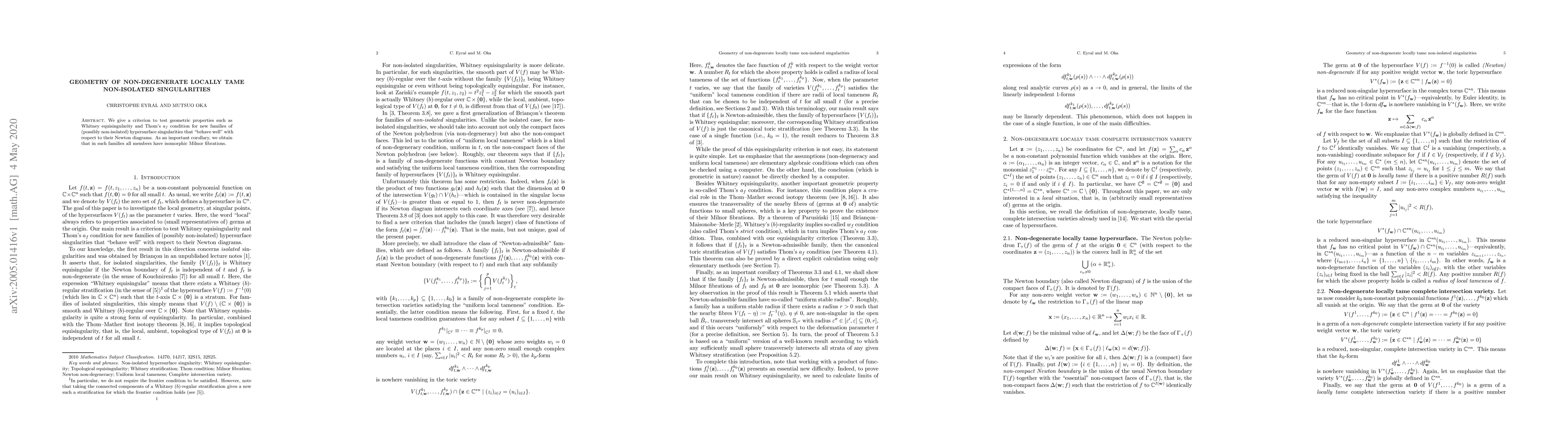 We give a criterion to test geometric properties such as Whitney equisingularity and Thom's $a_f$ condition for new families of (possibly non-isolated) hypersurface singularities that "behave well" with respect to their Newton diagrams. As an important corollary, we obtain that in such families all members have isomorphic Milnor fibrations.