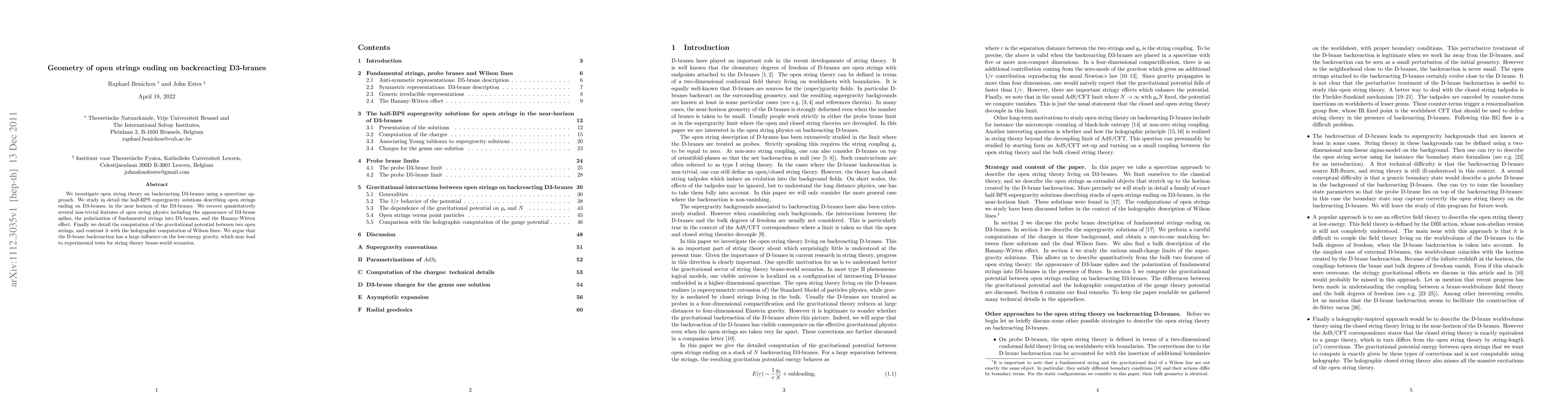 This paper examines open string theory on backreacting D3-branes, detailing half-BPS supergravity solutions for open strings near D3-branes' horizons and highlighting phenomena like D3-brane spikes and the Hanany-Witten effect. It also computes the gravitational potential between open strings and discusses its implications for low-energy gravity and potential experimental tests of string theory.