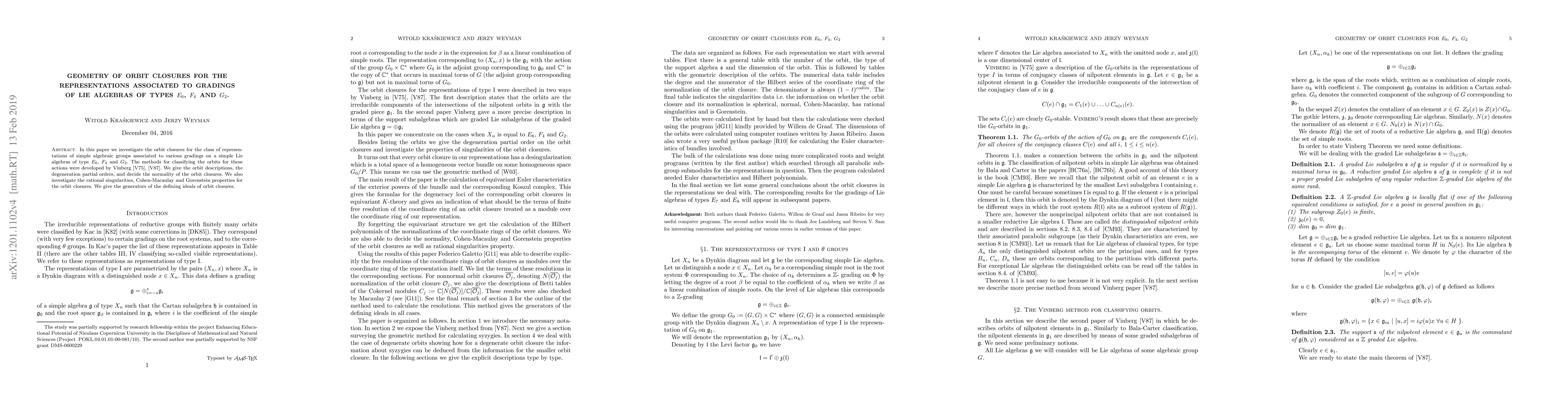 This paper examines orbit closures for representations of simple algebraic groups tied to gradings on Lie algebras of types $E_6$, $F_4$, and $G_2$. It provides orbit descriptions, degeneration orders, and determines normality, singularities, and properties like Cohen-Macaulay and Gorenstein for these closures, alongside generators for their defining ideals.