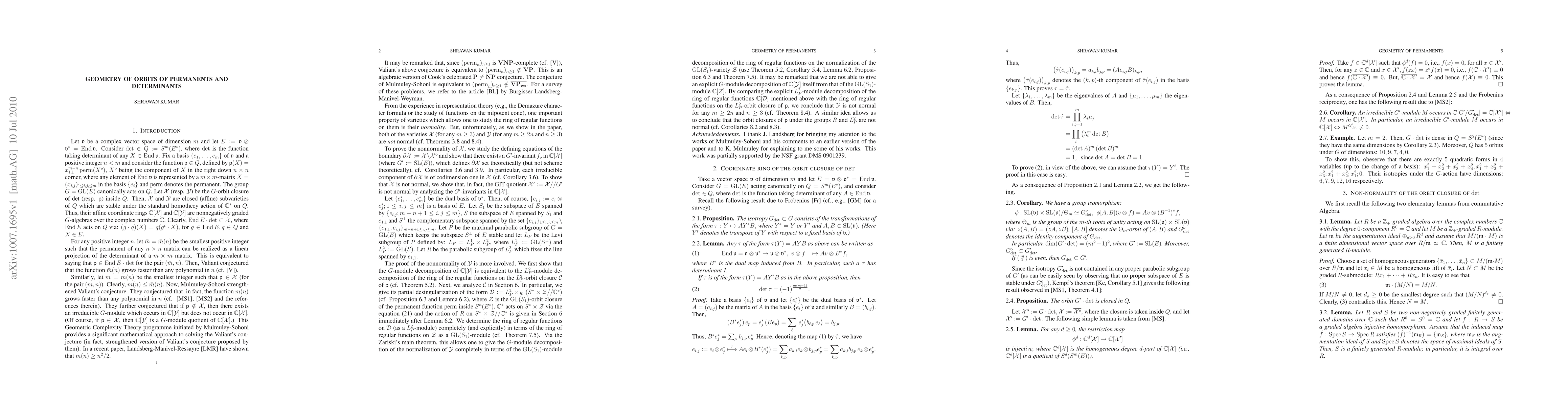 We prove that the orbit closure of the determinant is not normal. A similar result is obtained for the orbit closure of the permanent multiplied by a power of a linear form.