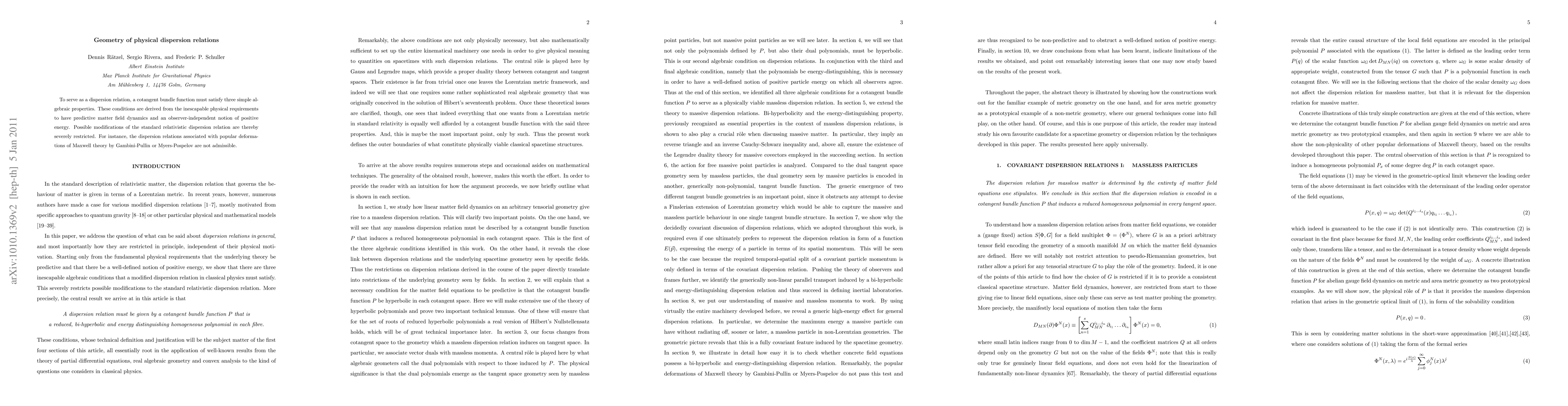 To serve as a dispersion relation, a cotangent bundle function must satisfy three simple algebraic properties. These conditions are derived from the inescapable physical requirements to have predictive matter field dynamics and an observer-independent notion of positive energy. Possible modifications of the standard relativistic dispersion relation are thereby severely restricted. For instance, the dispersion relations associated with popular deformations of Maxwell theory by Gambini-Pullin or Myers-Pospelov are not admissible.