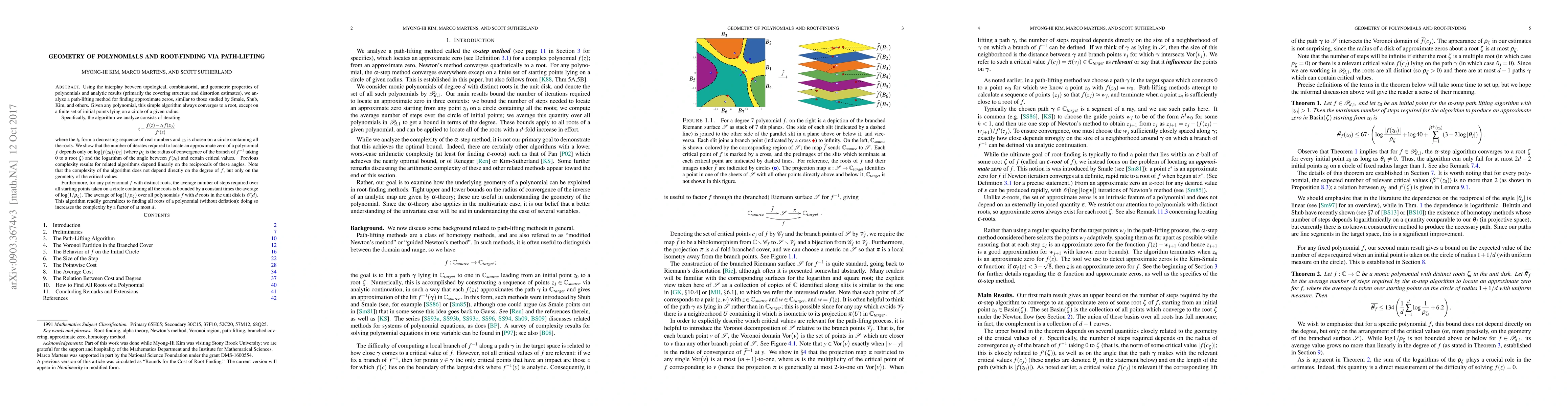 This paper presents a path-lifting method for finding approximate roots of polynomials, which converges to a root for any polynomial except for a finite set of initial points. The algorithm's complexity depends on the geometry of the polynomial's critical values rather than its degree, and it generalizes to finding all roots with a complexity increase proportional to the number of roots.