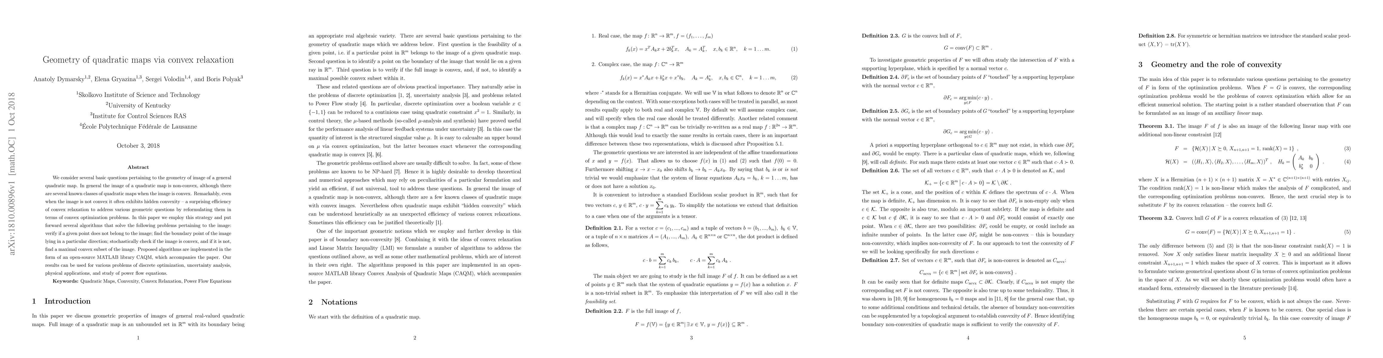 This research paper develops algorithms to analyze the geometry of quadratic maps, solving problems like verifying image membership and finding maximal convex subsets, using convex relaxation techniques.