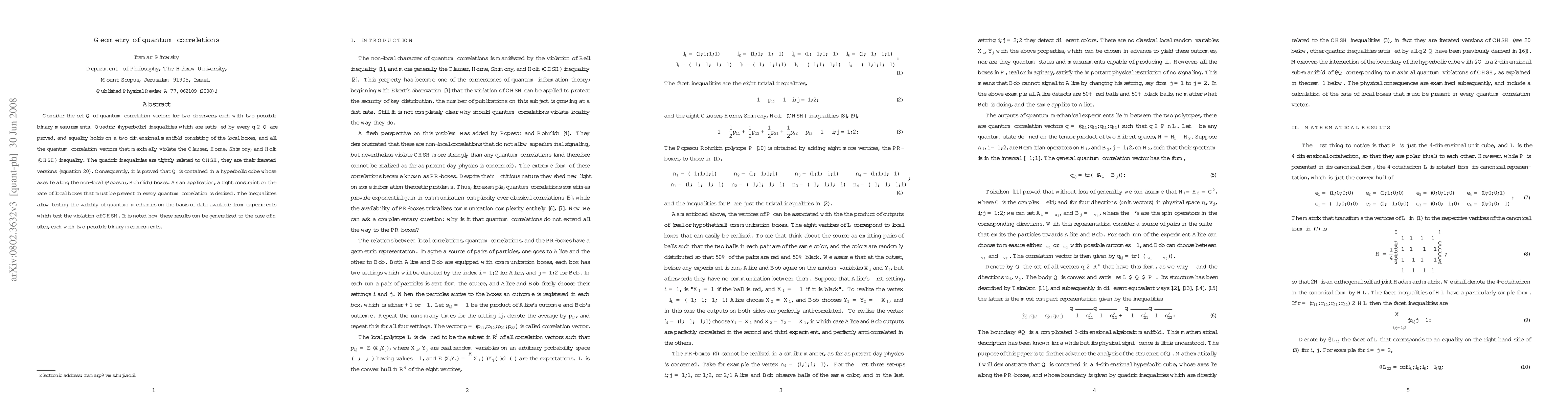 Consider the set Q of quantum correlation vectors for two observers, each with two possible binary measurements. Quadric (hyperbolic) inequalities which are satisfied by every vector in Q are proved, and equality holds on a two dimensional manifold consisting of the local boxes, and all the quantum correlation vectors that maximally violate the Clauser, Horne, Shimony, and Holt (CHSH) inequality. The quadric inequalities are tightly related to CHSH, they are their iterated versions (equation 20). Consequently, it is proved that Q is contained in a hyperbolic cube whose axes lie along the non-local (Popescu, Rohrlich) boxes. As an application, a tight constraint on the rate of local boxes that must be present in every quantum correlation is derived. The inequalities allow testing the validity of quantum mechanics on the basis of data available from experiments which test the violation of CHSH. It is noted how these results can be generalized to the case of n sites, each with two possible binary measurements.