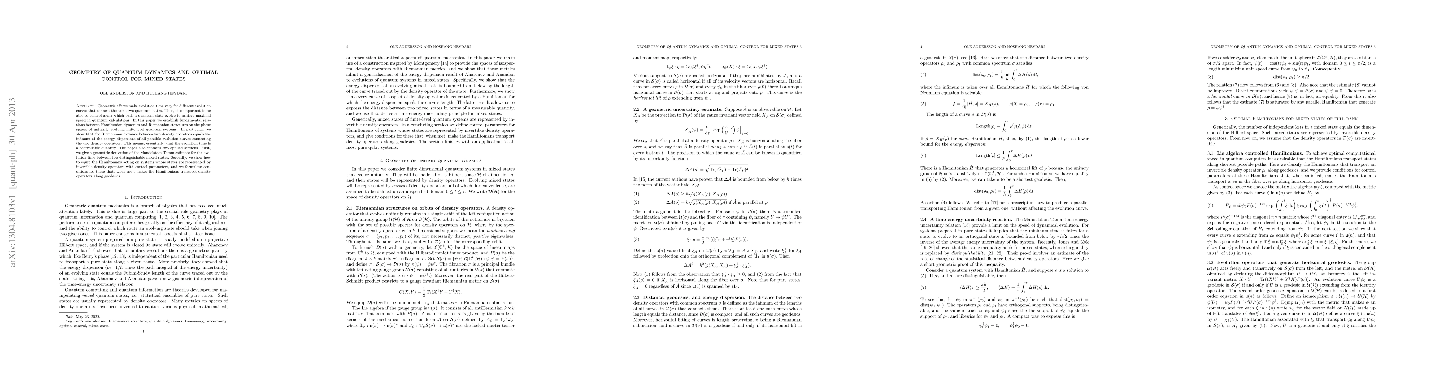 This paper explores the geometric framework for quantum dynamics, establishing a connection between Hamiltonian dynamics and Riemannian structures on quantum phase spaces. It demonstrates that the evolution time between quantum states can be controlled by choosing optimal evolution paths, and provides a geometric derivation of the Mandelstam-Tamm estimate, along with methods to equip Hamiltonians with control parameters to transport density operators along geodesics.