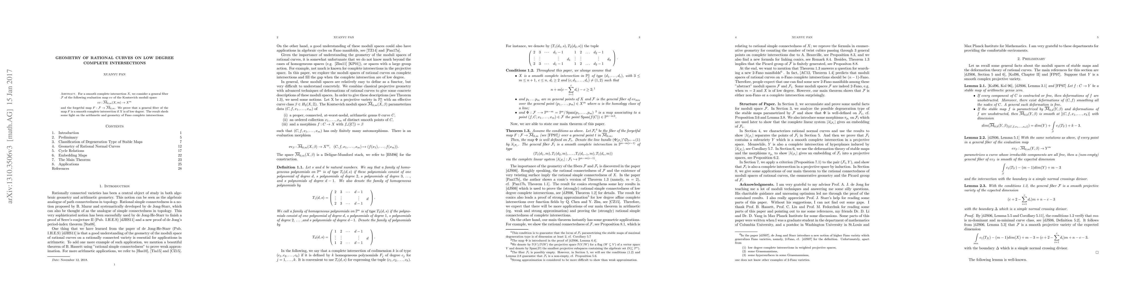 This paper proves that for smooth complete intersections of low degree, a general fiber of the evaluation map in the Kontsevich moduli space is a smooth complete intersection, providing insights into the arithmetic and geometry of Fano complete intersections.