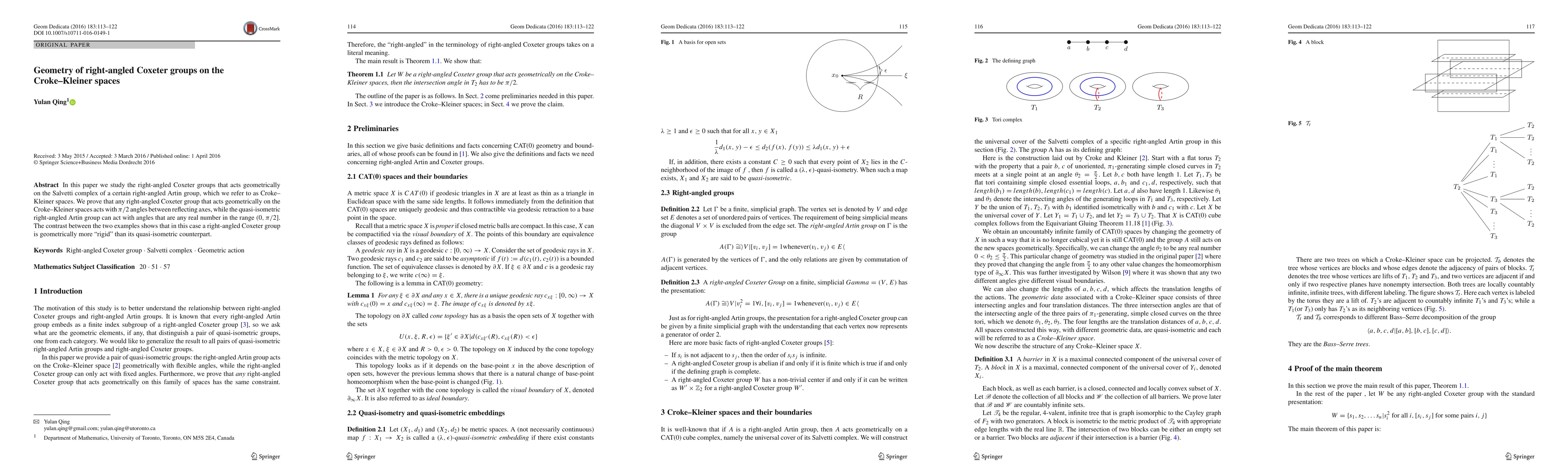In this paper we study the right-angled Coxeter groups that acts geometrically on the Salvetti complex of a certain right-angled Artin group, which we refer to as Croke-Kleiner spaces. We prove that any right-angled Coxeter group that acts geometrically on the Croke-Kleiner spaces acts with $\pi/2$ angles between reflecting axes, while the quasi-isometric right-angled Artin group can act with angles that are any real number in the range $(0, \pi/2]$. The contrast between the two examples shows that in this case a right-angled Coxeter group is geometrically more "rigid" than its quasi isometric counterpart.