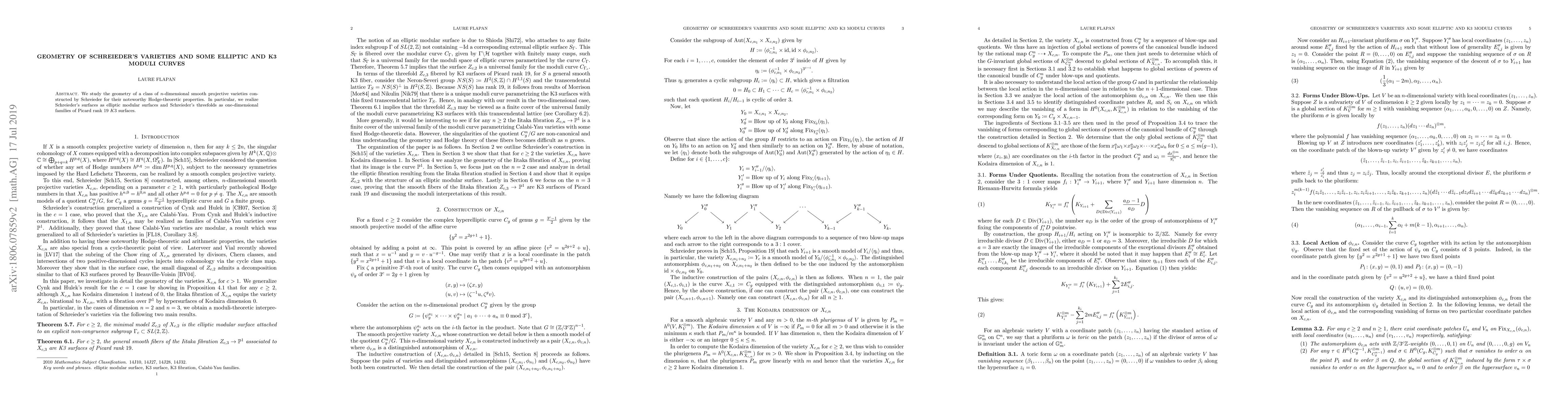 This paper investigates the geometry of Schreieder's $n$-dimensional smooth projective varieties, highlighting their Hodge-theoretic properties. It specifically demonstrates Schreieder's surfaces as elliptic modular surfaces and his threefolds as families of K3 surfaces with Picard rank 19.