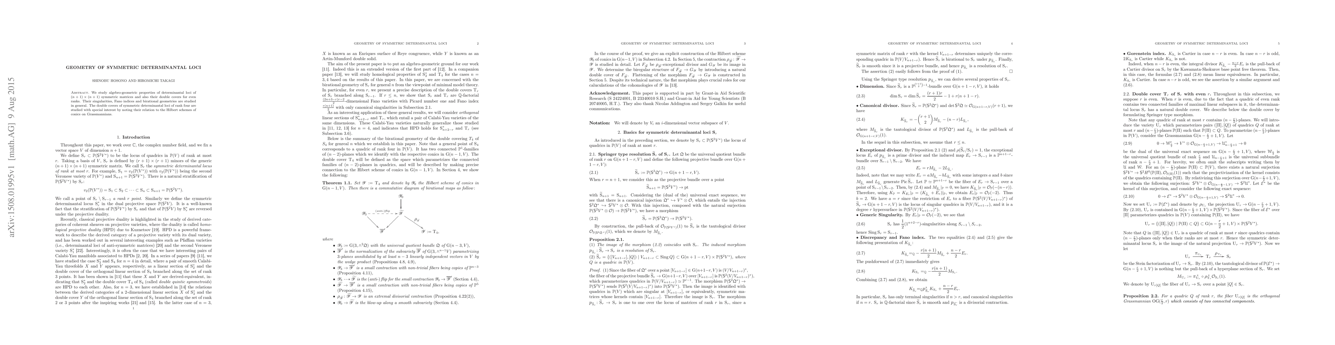 This paper investigates the algebro-geometric properties of determinantal loci formed by symmetric matrices of rank (n+1), focusing on their singularities, Fano indices, and birational geometries. Special attention is given to the double covers of symmetric determinantal loci of rank four, highlighting their connection to Hilbert schemes of conics on Grassmannians.
