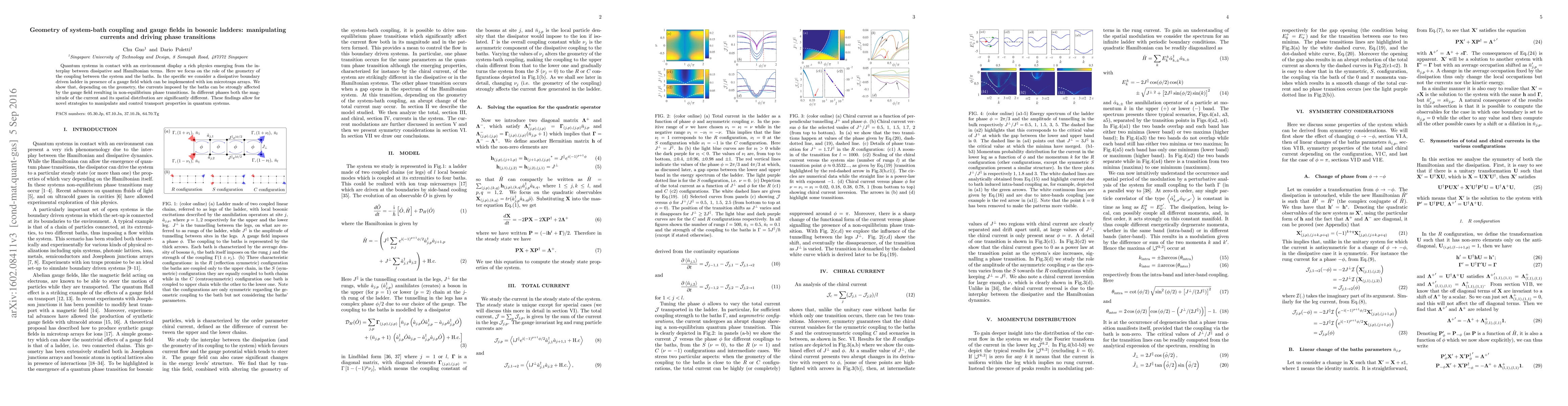 Quantum systems in contact with an environment display a rich physics emerging from the interplay between dissipative and Hamiltonian terms. Here we focus on the role of the geometry of the coupling between the system and the baths. In the specific we consider a dissipative boundary driven ladder in presence of a gauge field which can be implemented with ion microtraps arrays. We show that, depending on the geometry, the currents imposed by the baths can be strongly affected by the gauge field resulting in non-equilibrium phase transitions. In different phases both the magnitude of the current and its spatial distribution are significantly different. These findings allow for novel strategies to manipulate and control transport properties in quantum systems.
