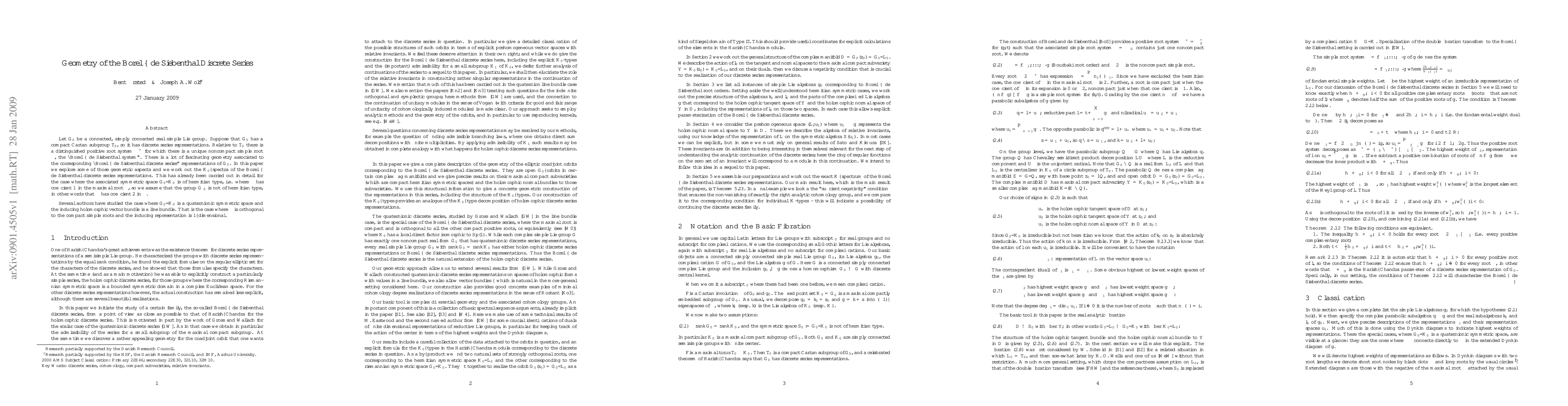 Let $G_0$ be a connected, simply connected real simple Lie group. Suppose that $G_0$ has a compact Cartan subgroup $T_0$, so it has discrete series representations. Relative to $T_0$ there is a distinguished positive root system $\Delta^+$ for which there is a unique noncompact simple root $\nu$, the "Borel -- de Siebenthal system". There is a lot of fascinating geometry associated to the corresponding "Borel -- de Siebenthal discrete series" representations of $G_0$. In this paper we explore some of those geometric aspects and we work out the $K_0$--spectra of the Borel -- de Siebenthal discrete series representations. This has already been carried out in detail for the case where the associated symmetric space $G_0/K_0$ is of hermitian type, i.e. where $\nu$ has coefficient 1 in the maximal root $\mu$, so we assume that the group $G_0$ is not of hermitian type, in other words that $\nu$ has coefficient 2 in $\mu$. \medskip Several authors have studied the case where $G_0/K_0$ is a quaternionic symmetric space and the inducing holomorphic vector bundle is a line bundle. That is the case where $\mu$ is orthogonal to the compact simple roots and the inducing representation is 1--dimensional.