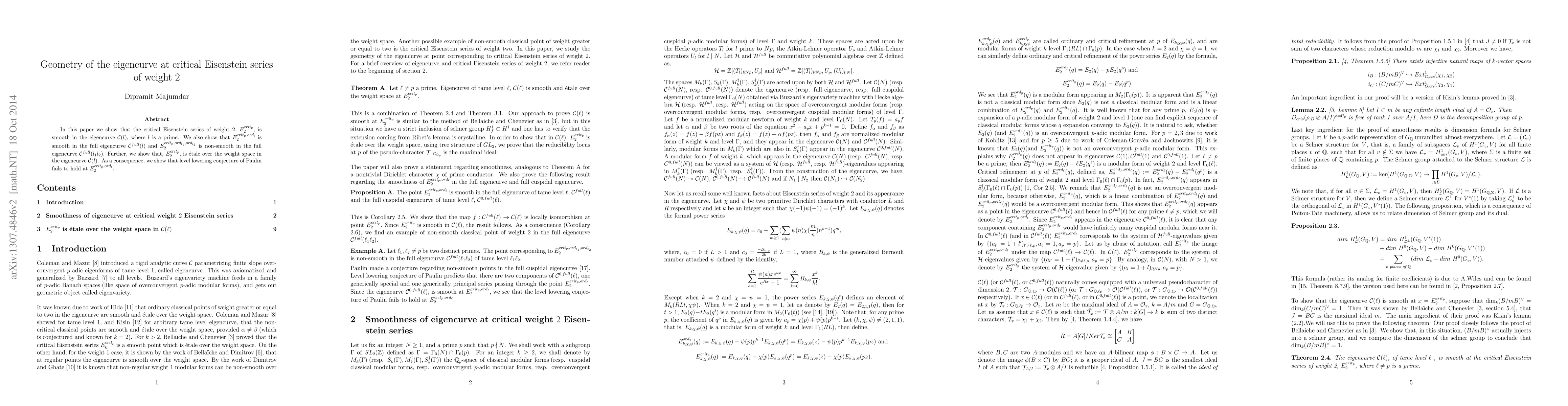 This paper demonstrates the smoothness properties of critical Eisenstein series of weight 2 in various eigencurves, showing that certain series are smooth while others are not, and disproves Paulin's level lowering conjecture for these series.