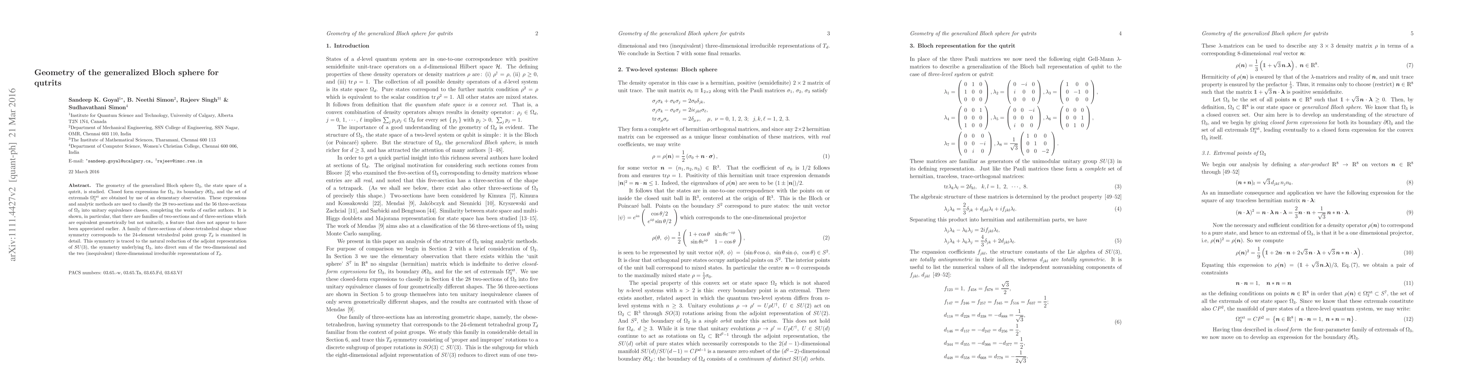 Researchers studied the geometry of a qutrit's state space, the generalized Bloch sphere, and found new classes of equivalent geometric shapes that differ in unitary equivalence.