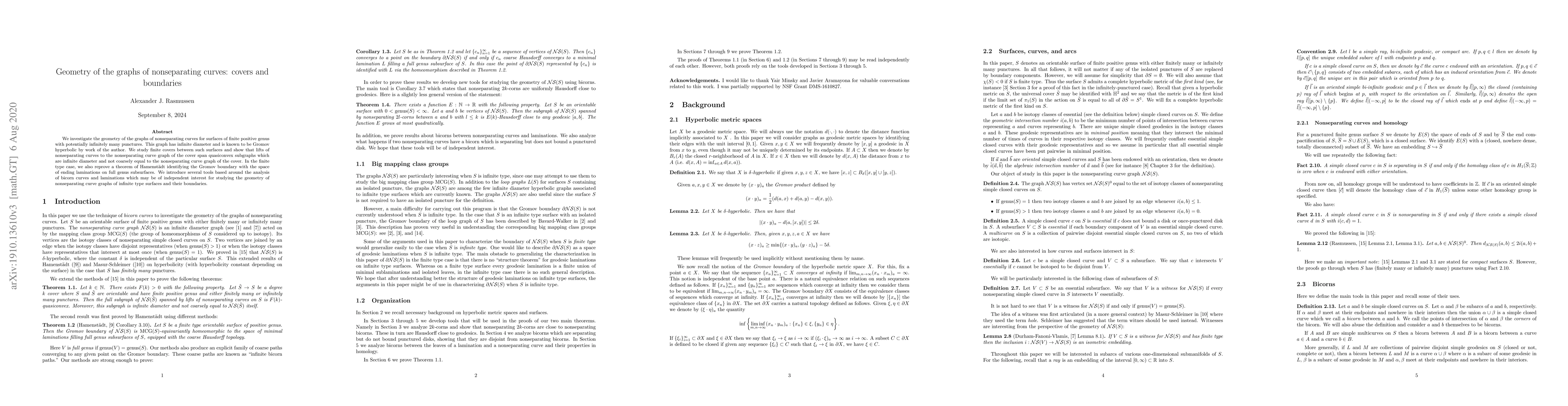 The paper explores the geometry of nonseparating curve graphs on surfaces of finite genus with punctures, demonstrating that lifts of such curves in finite covers span infinite diameter quasiconvex subgraphs. It also relates the Gromov boundary to ending laminations and introduces new tools for analyzing bicorn curves and laminations.