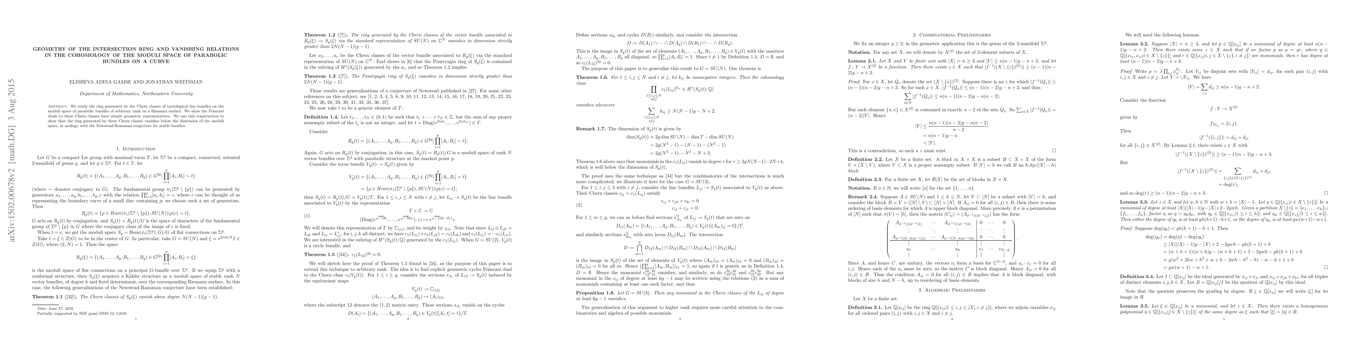 We study the ring generated by the Chern classes of tautological line bundles on the moduli space of parabolic bundles of arbitrary rank on a Riemann surface. We show the Poincar\'e duals to these Chern classes have simple geometric representatives. We use this construction to show that the ring generated by these Chern classes vanishes below the dimension of the moduli space, in analogy with the Newstead-Ramanan conjecture for stable bundles.