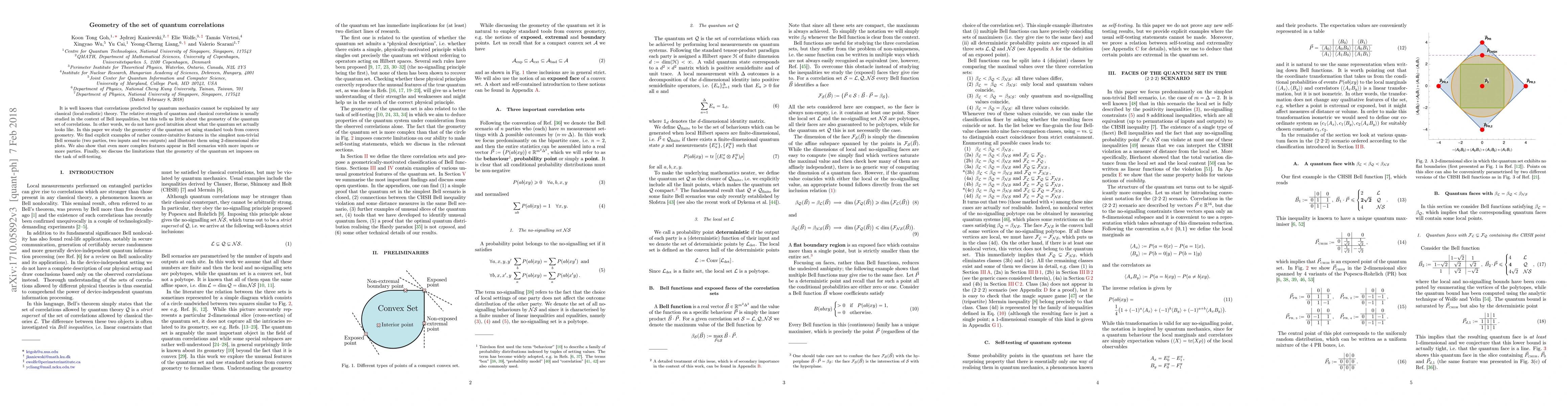 The paper investigates the geometry of quantum correlations in Bell scenarios, revealing counter-intuitive features that challenge classical intuition about what these correlations look like. It also discusses how this geometry limits self-testing tasks.