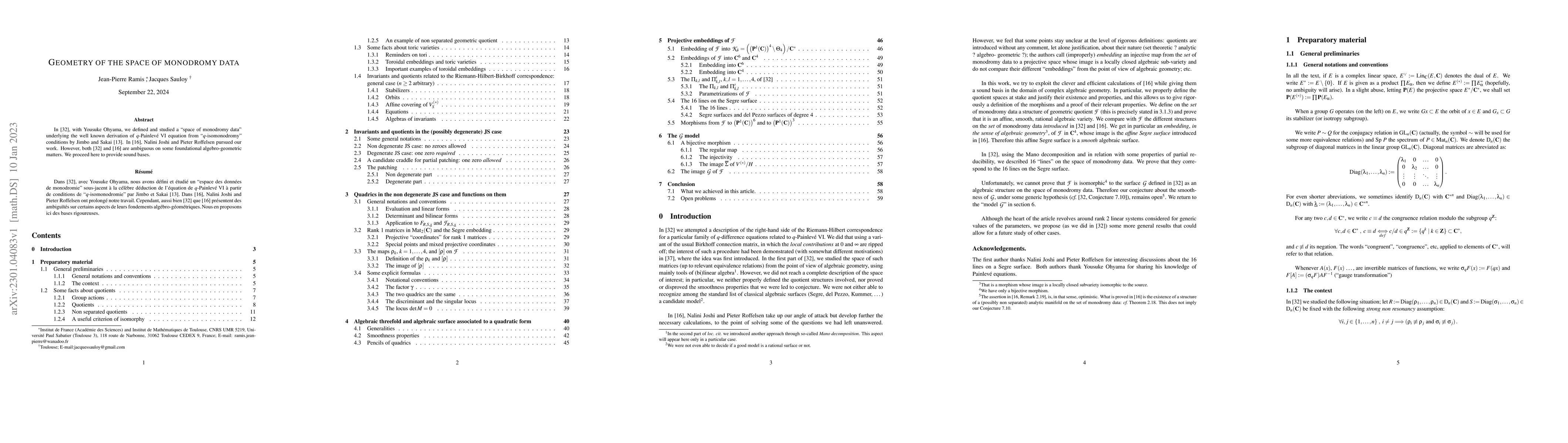 In a paper published by the Annales de la Facult\'e de Sciences de Toulouse, with Yousuke Ohyama, we defined and studied a space of monodromy data underlying the well known derivation of q-Painlev\'e VI equation from q-isomonodromy conditions by Jimbo and Sakai. In a recent ArXiv preprint, Nalini Joshi and Pieter Roffelsen pursued our work. However, both our article and their preprint are ambiguous on some foundational algebro-geometric matters. We proceed here to provide sound bases.