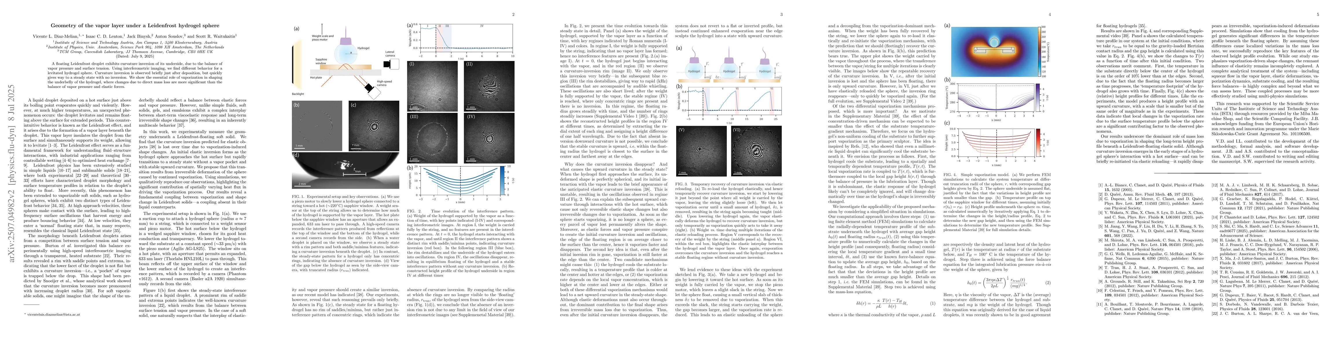 A floating Leidenfrost droplet exhibits curvature inversion of its underside, due to the balance of vapor pressure and surface tension. Using interferometric imaging, we find different behavior for a levitated hydrogel sphere. Curvature inversion is observed briefly just after deposition, but quickly gives way to a steady state with no inversion. We show the essential role of vaporization on shaping the underbelly of the hydrogel, adding a new component to the interplay between vapor pressure and elastic force