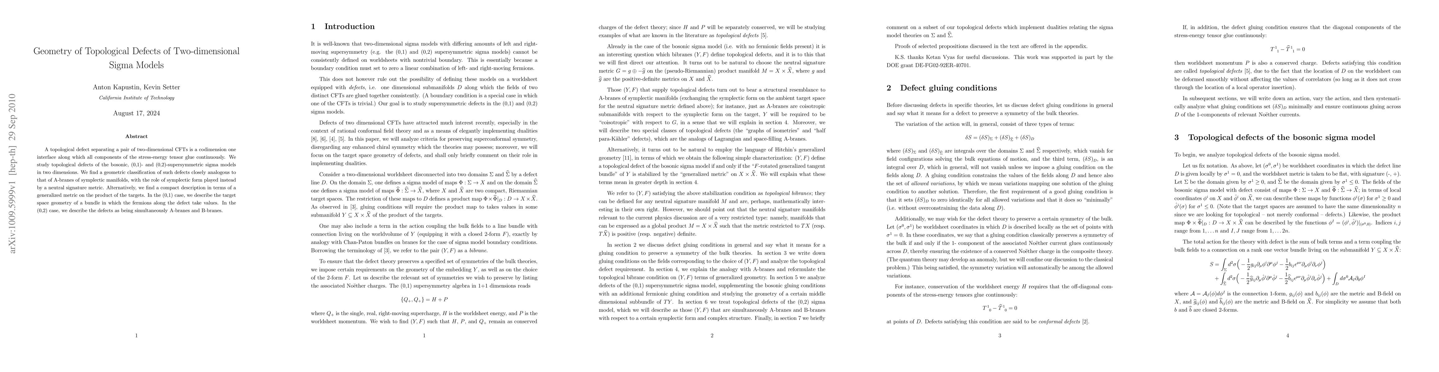 This paper studies topological defects in two-dimensional sigma models, classifying them geometrically analogous to A-branes on symplectic manifolds, using a neutral signature metric. It also provides a compact description in terms of a generalized metric on the product of targets, and specifically addresses fermionic bundles and dual A-branes/B-branes in (0,1) and (0,2) supersymmetry cases.