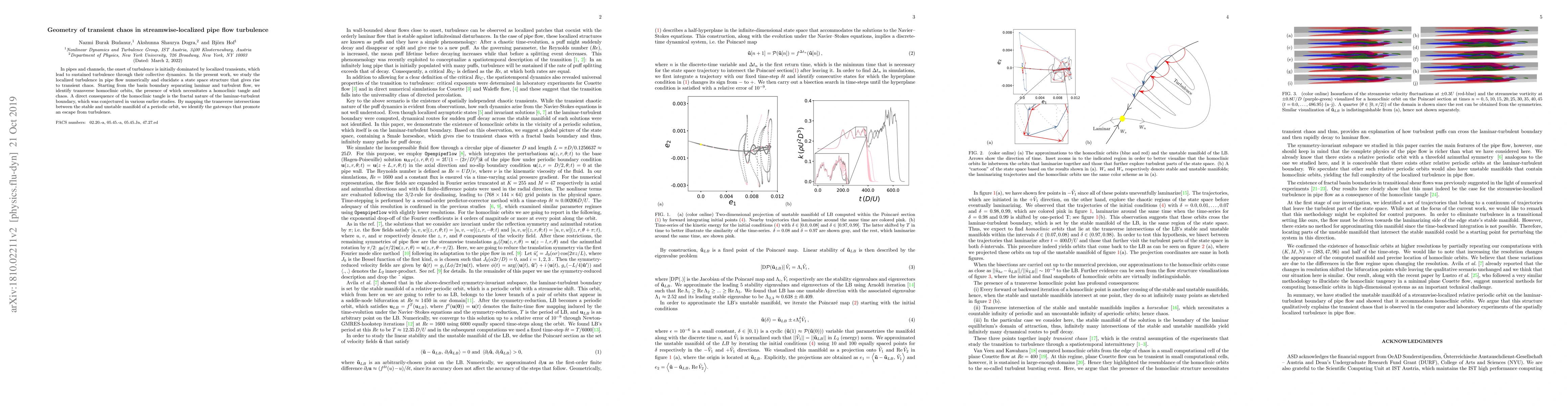 This research numerically investigates the transient chaos in localized pipe flow turbulence, revealing a state space structure characterized by transverse homoclinic orbits and a homoclinic tangle, which leads to the fractal boundary between laminar and turbulent flow. The study identifies 'gateways' in the state space that facilitate the escape from turbulence.