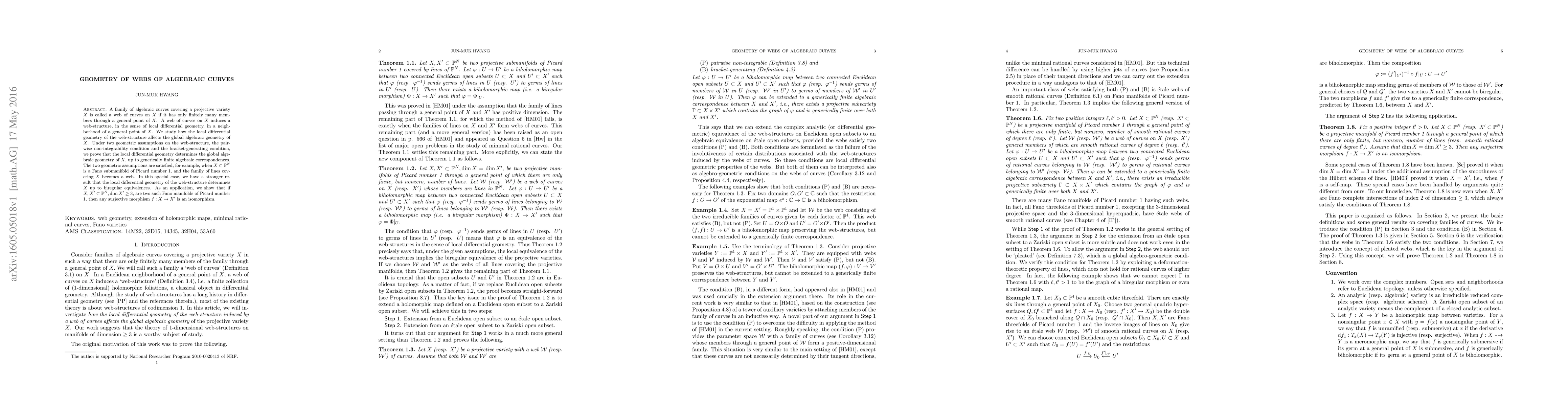 A family of algebraic curves covering a projective variety $X$ is called a web of curves on $X$ if it has only finitely many members through a general point of $X$. A web of curves on $X$ induces a web-structure, in the sense of local differential geometry, in a neighborhood of a general point of $X$. We study how the local differential geometry of the web-structure affects the global algebraic geometry of $X$. Under two geometric assumptions on the web-structure, the pairwise non-integrability condition and the bracket-generating condition, we prove that the local differential geometry determines the global algebraic geometry of $X$, up to generically finite algebraic correspondences. The two geometric assumptions are satisfied, for example, when $X \subset {\bf P}^N$ is a Fano submanifold of Picard number 1, and the family of lines covering $X$ becomes a web. In this special case, we have a stronger result that the local differential geometry of the web-structure determines $X$ up to biregular equivalences. As an application, we show that if $X, X' \subset {\bf P}^N, \dim X' \geq 3,$ are two such Fano manifolds of Picard number 1, then any surjective morphism $f: X \to X'$ is an isomorphism.