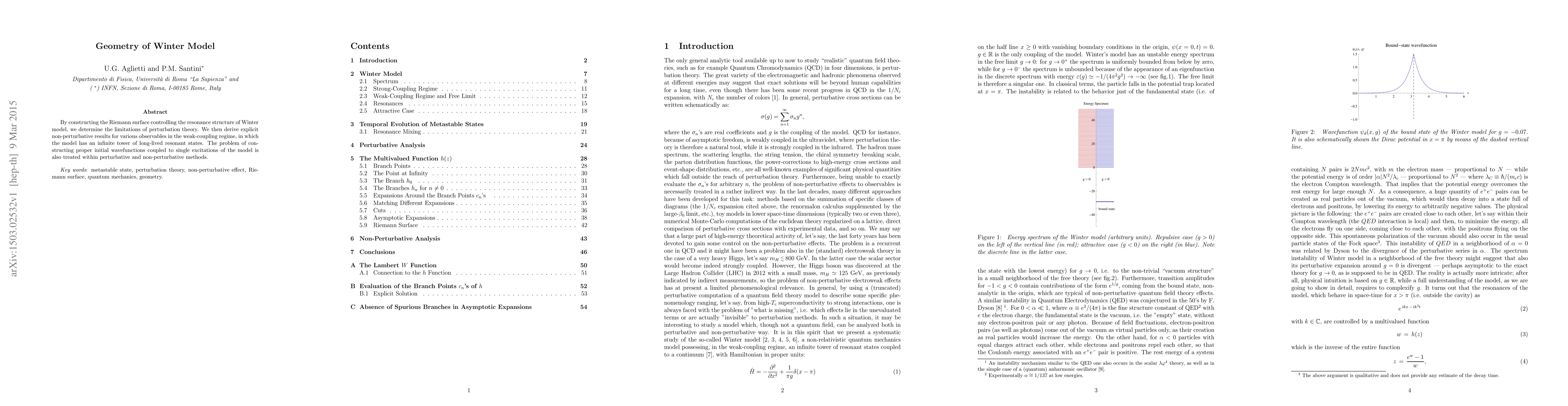 By constructing the Riemann surface controlling the resonance structure of Winter model, we determine the limitations of perturbation theory. We then derive explicit non-perturbative results for various observables in the weak-coupling regime, in which the model has an infinite tower of long-lived resonant states. The problem of constructing proper initial wavefunctions coupled to single excitations of the model is also treated within perturbative and non-perturbative methods.
