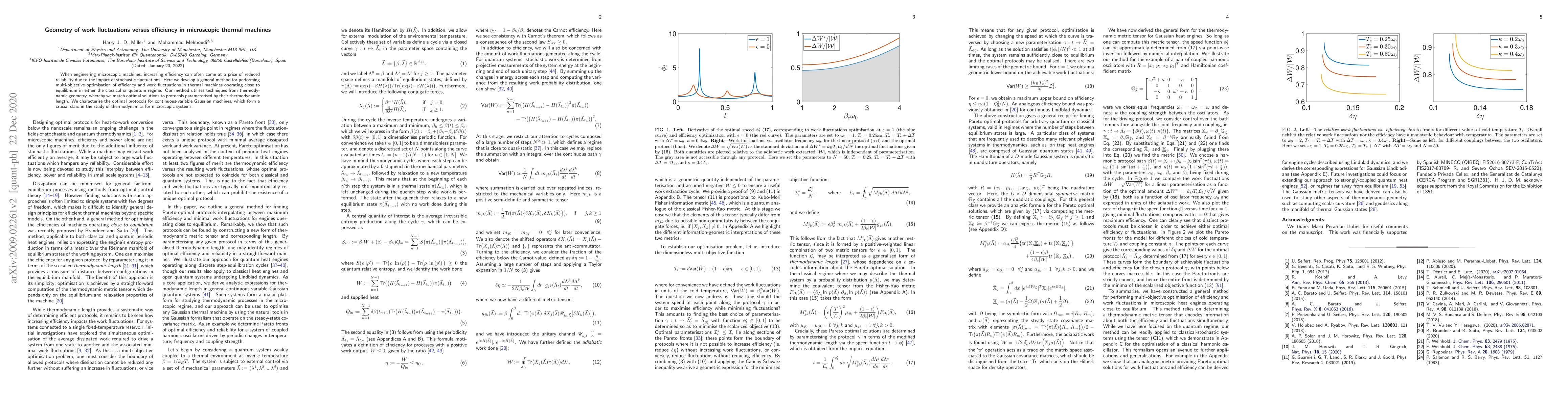 When engineering microscopic machines, increasing efficiency can often come at a price of reduced reliability due to the impact of stochastic fluctuations. Here we develop a general method for performing multi-objective optimisation of efficiency and work fluctuations in thermal machines operating close to equilibrium in either the classical or quantum regime. Our method utilises techniques from thermodynamic geometry, whereby we match optimal solutions to protocols parameterised by their thermodynamic length. We characterise the optimal protocols for continuous-variable Gaussian machines, which form a crucial class in the study of thermodynamics for microscopic systems.