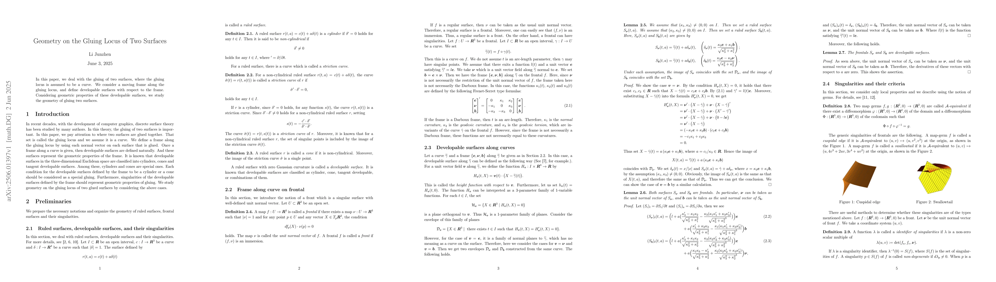This work appears novel by explicitly linking the geometric properties of developable surfaces to the gluing locus of two surfaces, providing a new perspective on surface gluing problems in differential geometry.