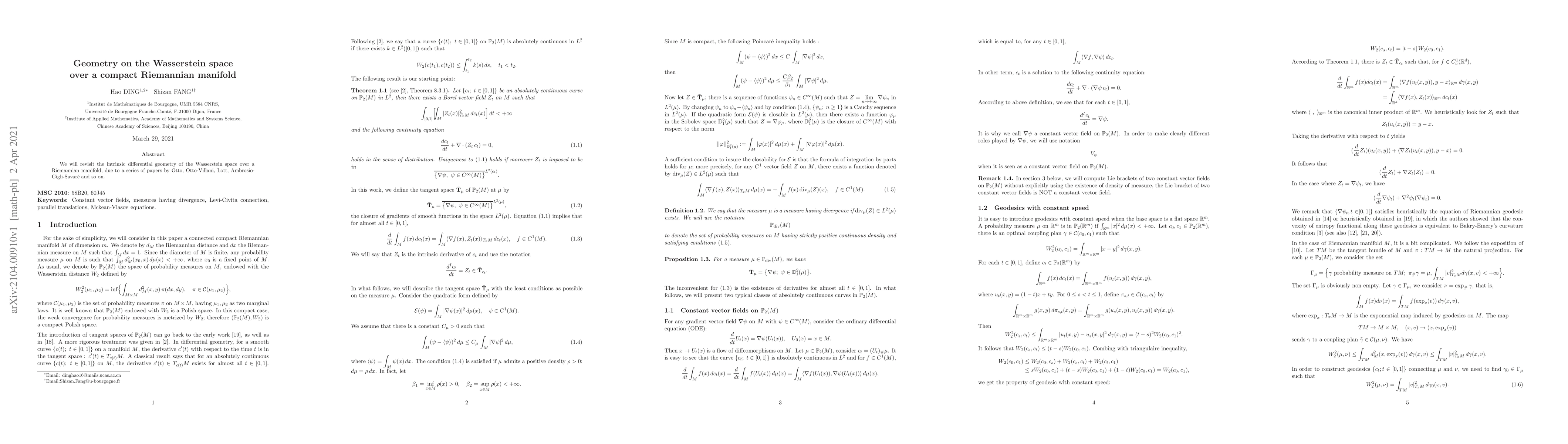 Summary: This paper explores the intrinsic differential geometry of the Wasserstein space over a compact Riemannian manifold, building on foundational work by Otto, Villani, and others to develop a comprehensive understanding of its geometric properties.